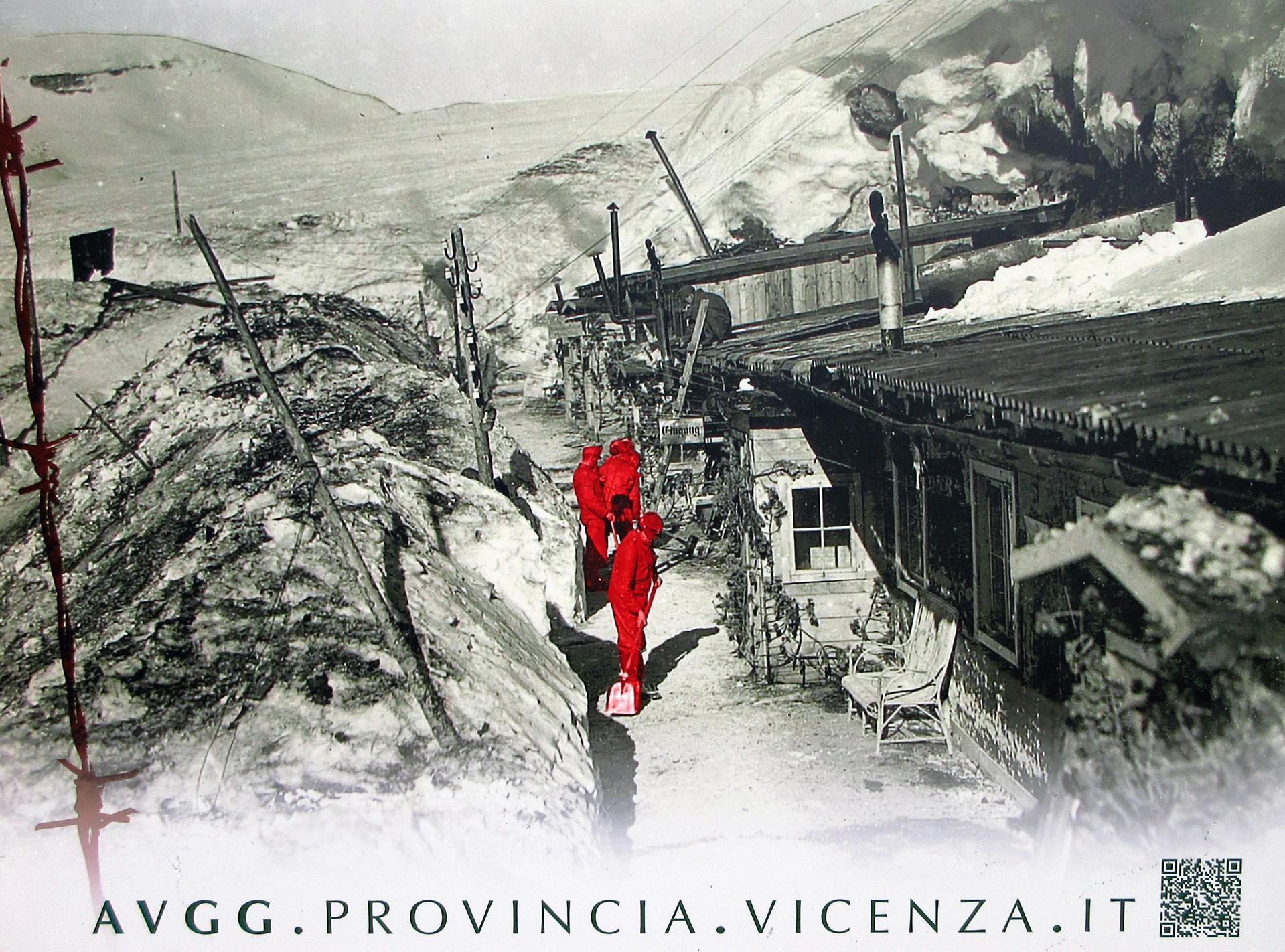 In cima ci sono due croci, quella in legno è in provincia di Vicenza, mentre quella in metallo è in provincia di Trento.
