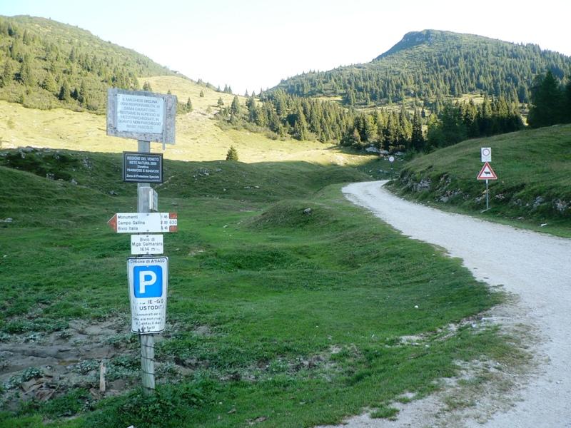 Da Asiago in direzione Trento. Usciti dall'abitato di Camporovere dopo circa 3 km e subito dopo una curva a destra sempre sulla destra inizia una strada a fondo naturale con indicazione Galmarara. Si prosegue per questa strada fino al termine della stessa per circa 7 km. Non è messa molto bene, soprattutto dopo i tornanti.