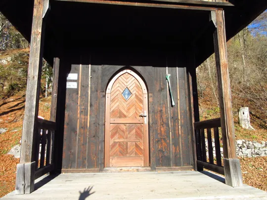 Oltrepassato il cimitero si può salire verso la chiesetta, una ricostruzione di quella che c'era durante il conflitto.