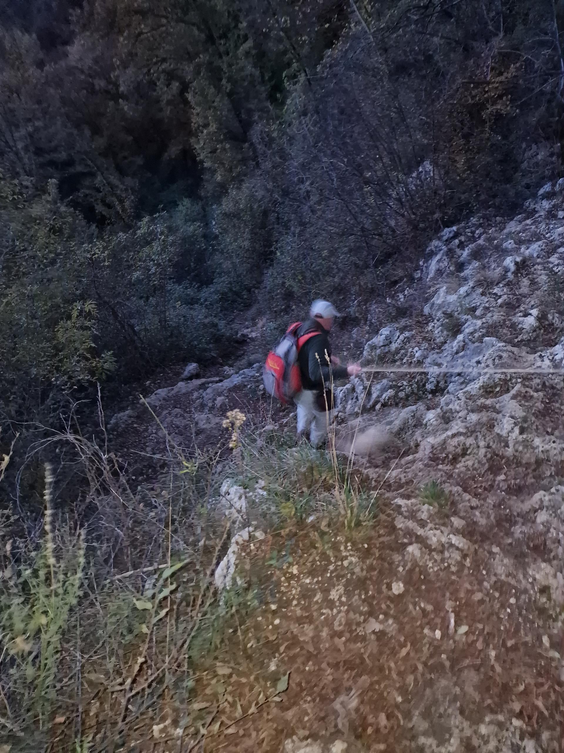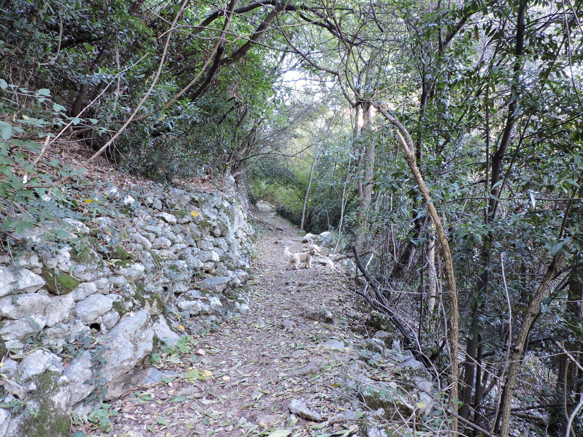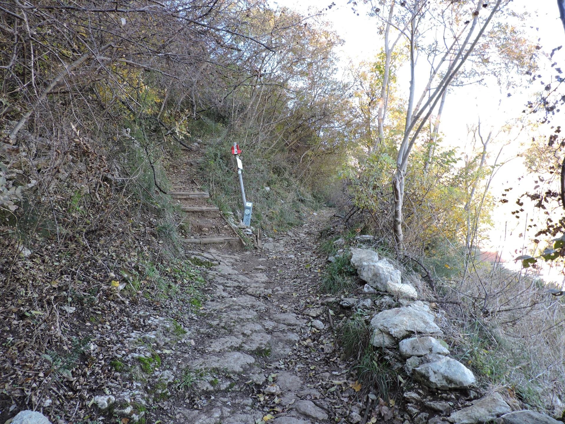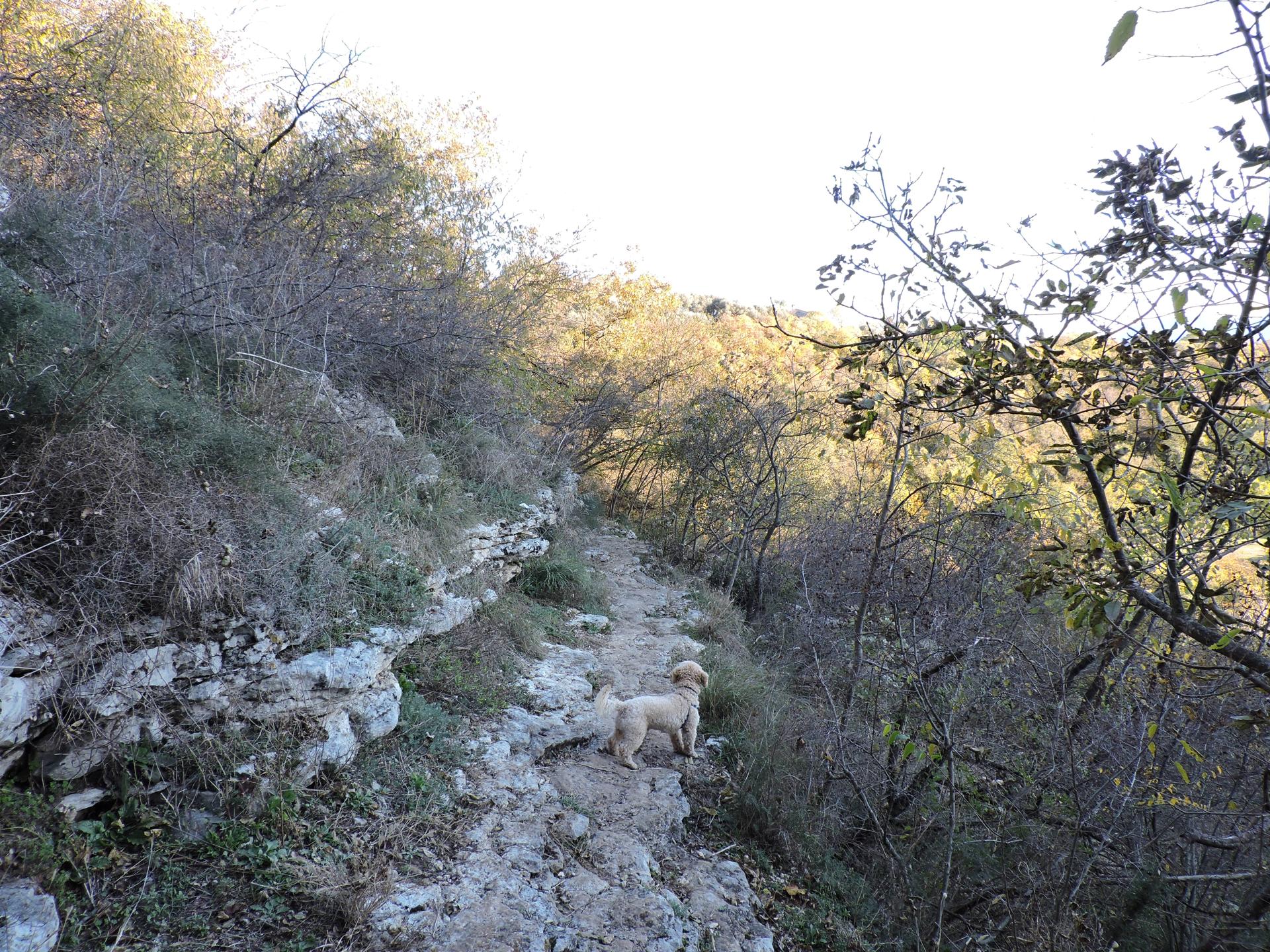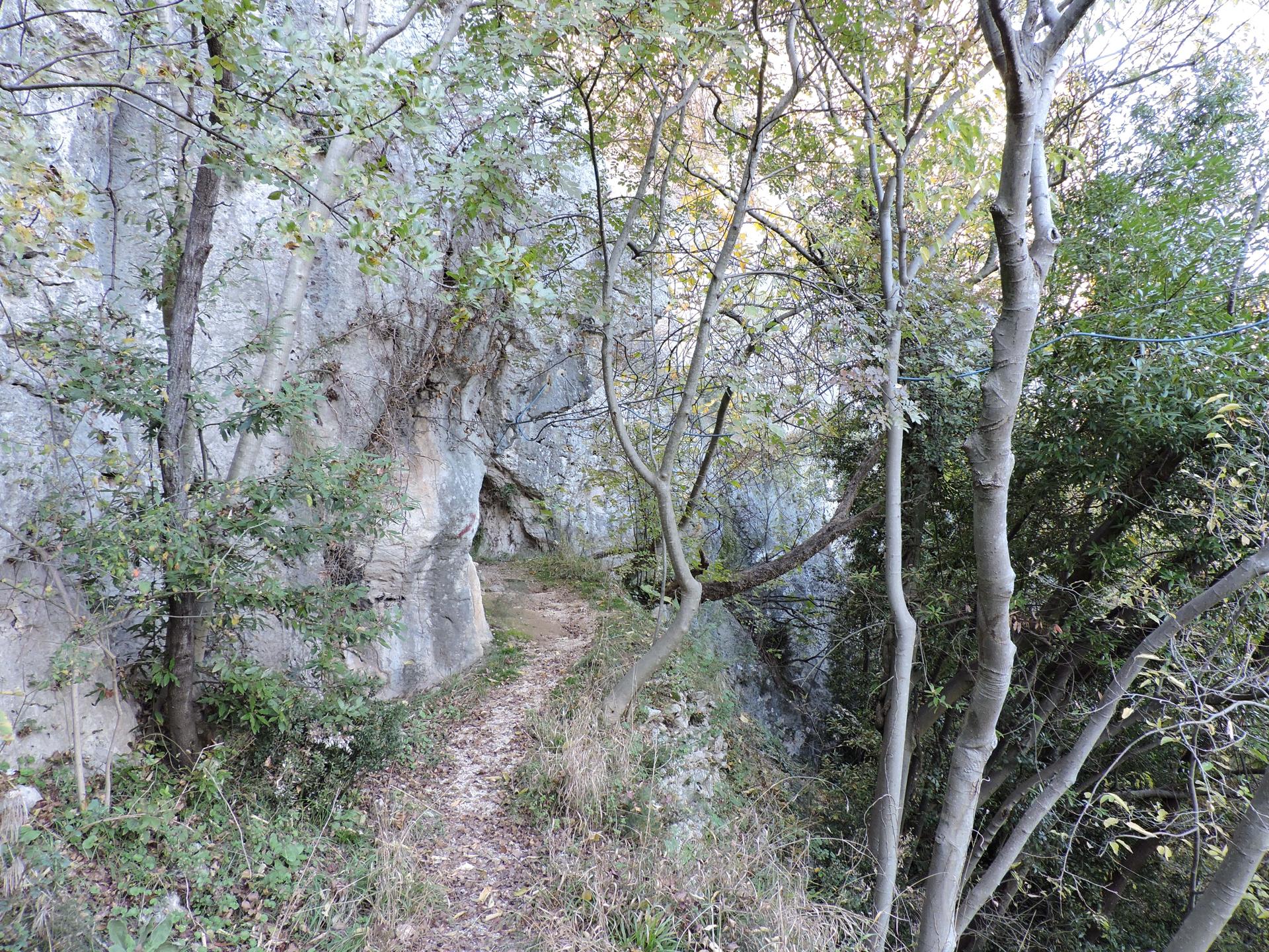 Il sentiero ben segnalato prosegue verso Lumignano. Un solo punto difficile dove delle corde aiutano la discesa.