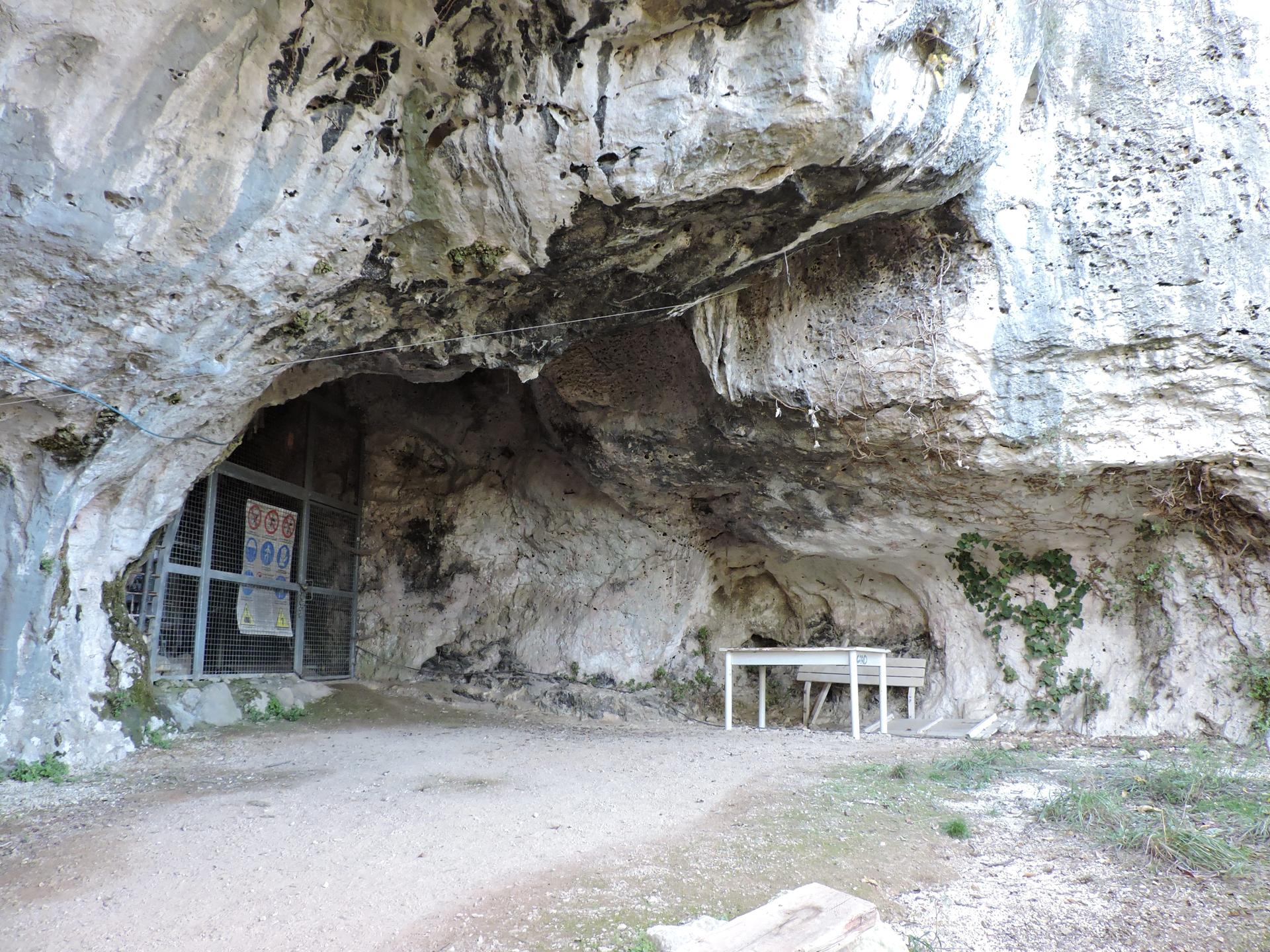 Nel Pleistocene medio, oltre 130.000 anni fa, la cavità era limitata all'attuale parte più interna della grotta "Sala Grande" e costituiva una voragine senza accessi dall'esterno, profonda circa 30 metri. In questa fase si accumulò il riempimento più antico, costituito da sabbie grossolane trasportate dall'acqua nella voragine e sedimentate nel pozzo più profondo, dove sono state scavate fino ad una profondità di 6 metri. Questo deposito sabbioso è sigillato da un crostone stalagmitico, che si trova a circa 9 metri di profondità nella "Sala Grande". Nel corso dell'Interglaciale riss-wurmiano (130.000-110.000 anni dal presente) l'erosione e i crolli fecero arretrare il versante, aprendo così una comunicazione con la voragine: l'ingresso attuale. Da questo momento la grotta fu frequentata da animali (soprattutto dall'orso delle caverne, del quale sono stati trovati abbondanti resti scheletrici in tutti gli strati) e a volte anche da gruppi di cacciatori paleolitici, che vi lasciarono le tracce del loro passaggio. I sedimenti, i pollini, i resti scheletrici degli animali offrono un'immagine dell'ambiente circostante e consentono di ricostruire la storia del paesaggio vegetale durante l'ultima glaciazione (110.000-10.000 anni da oggi). Complessivamente questi depositi, che si sovrappongono al crostone stalagmitico, hanno uno spessore di circa 9 metri.