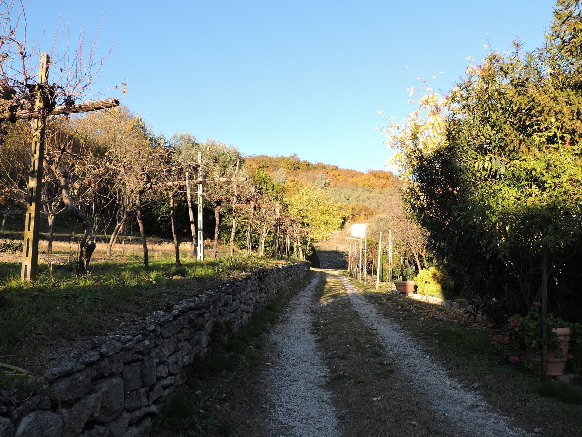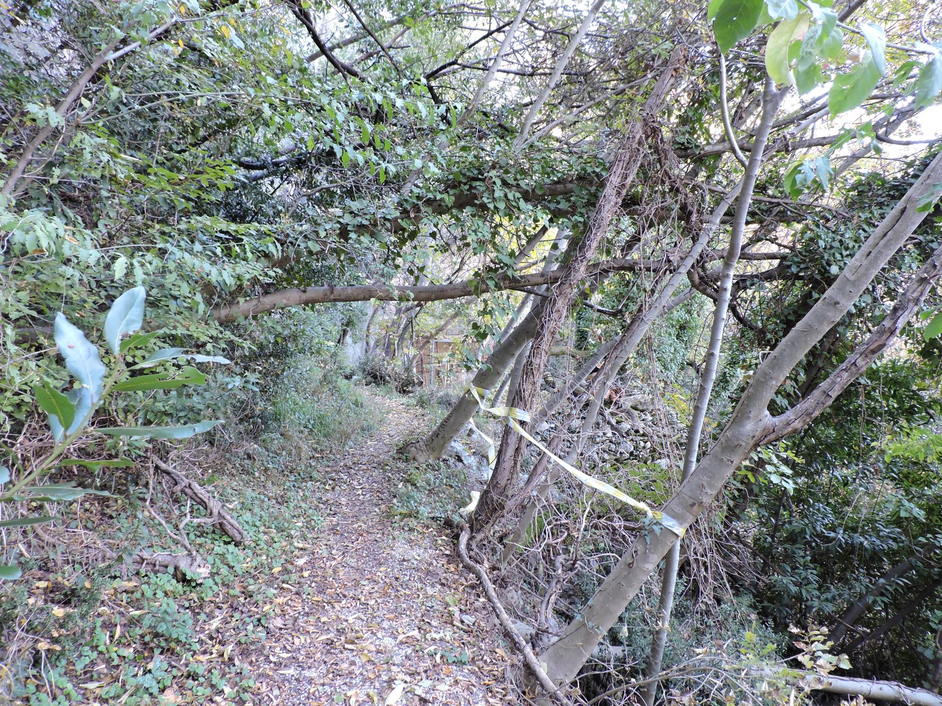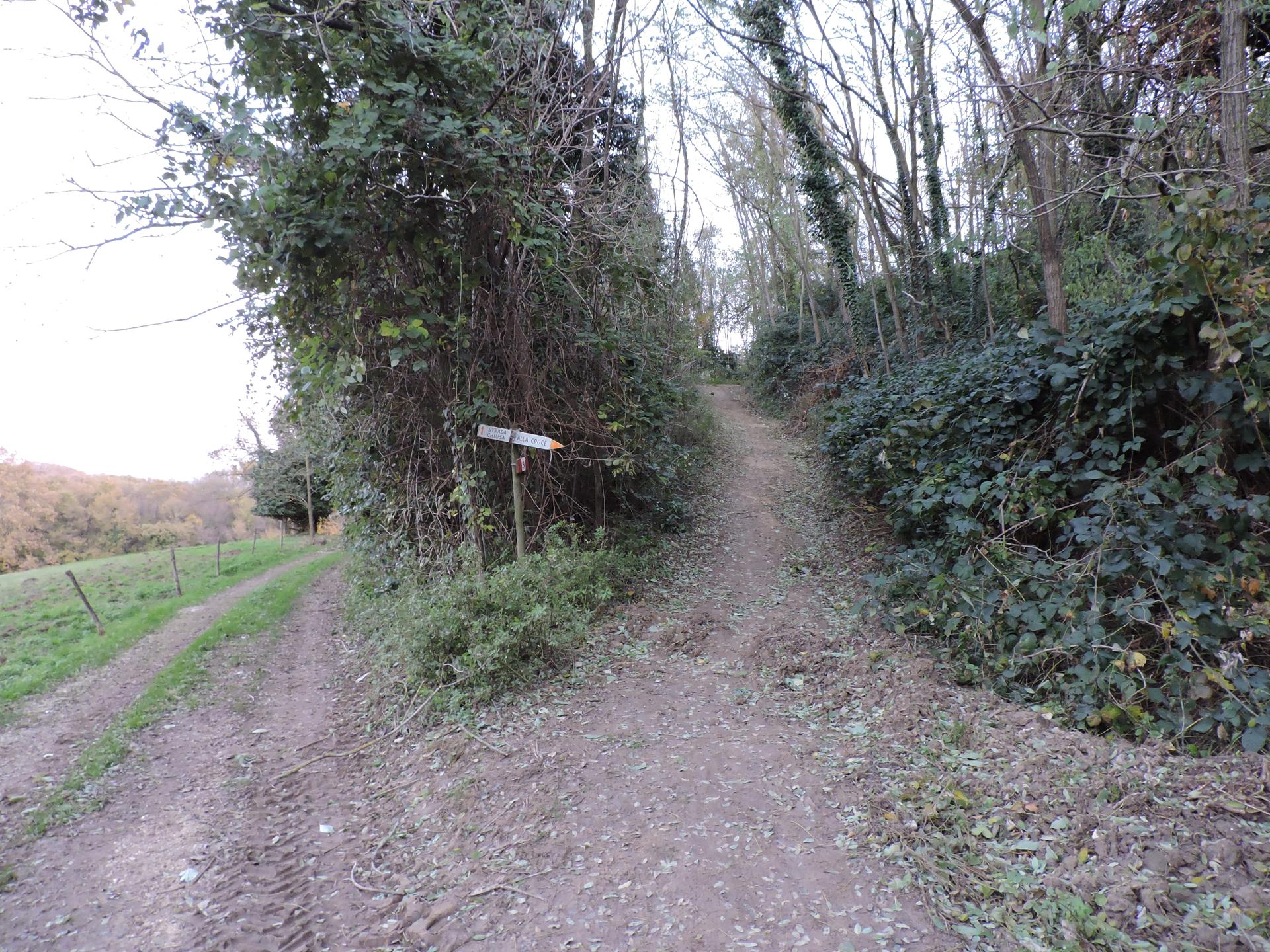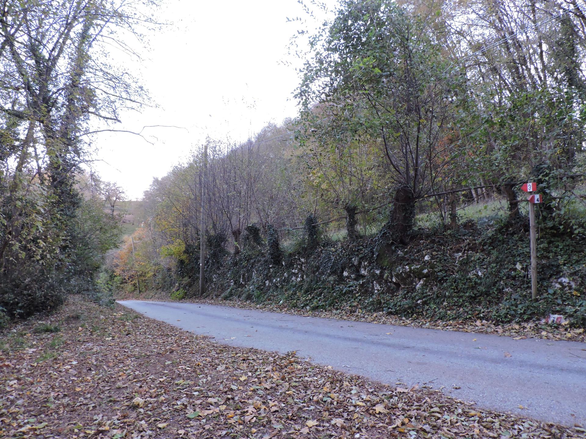 Alla strada asfaltata si prende a sinistra verso nord est, raggiungendo alcune case. Il sentiero sembra terminare in una casa, ma prosegue infilandosi a sinistra tra due edifici.
