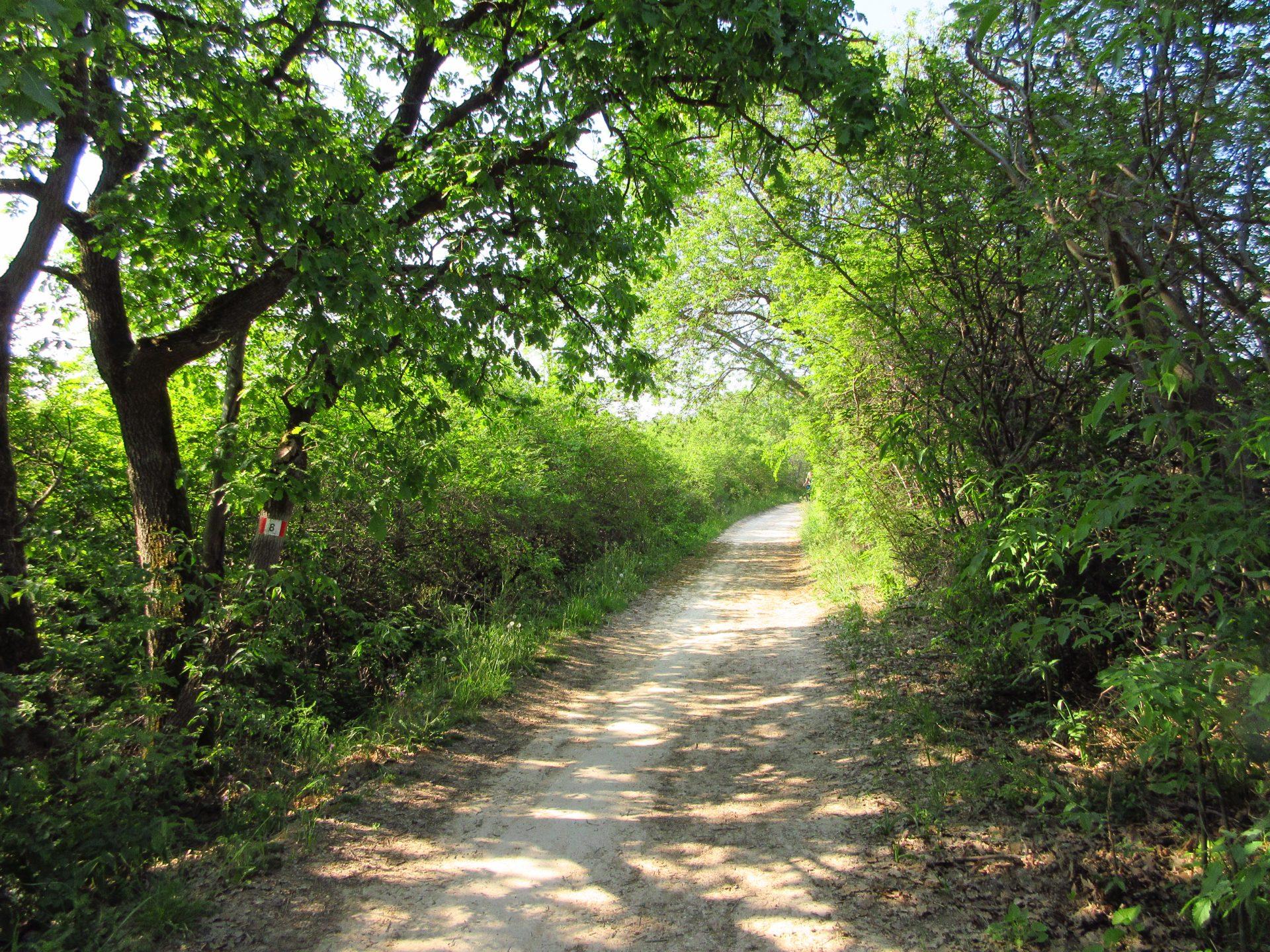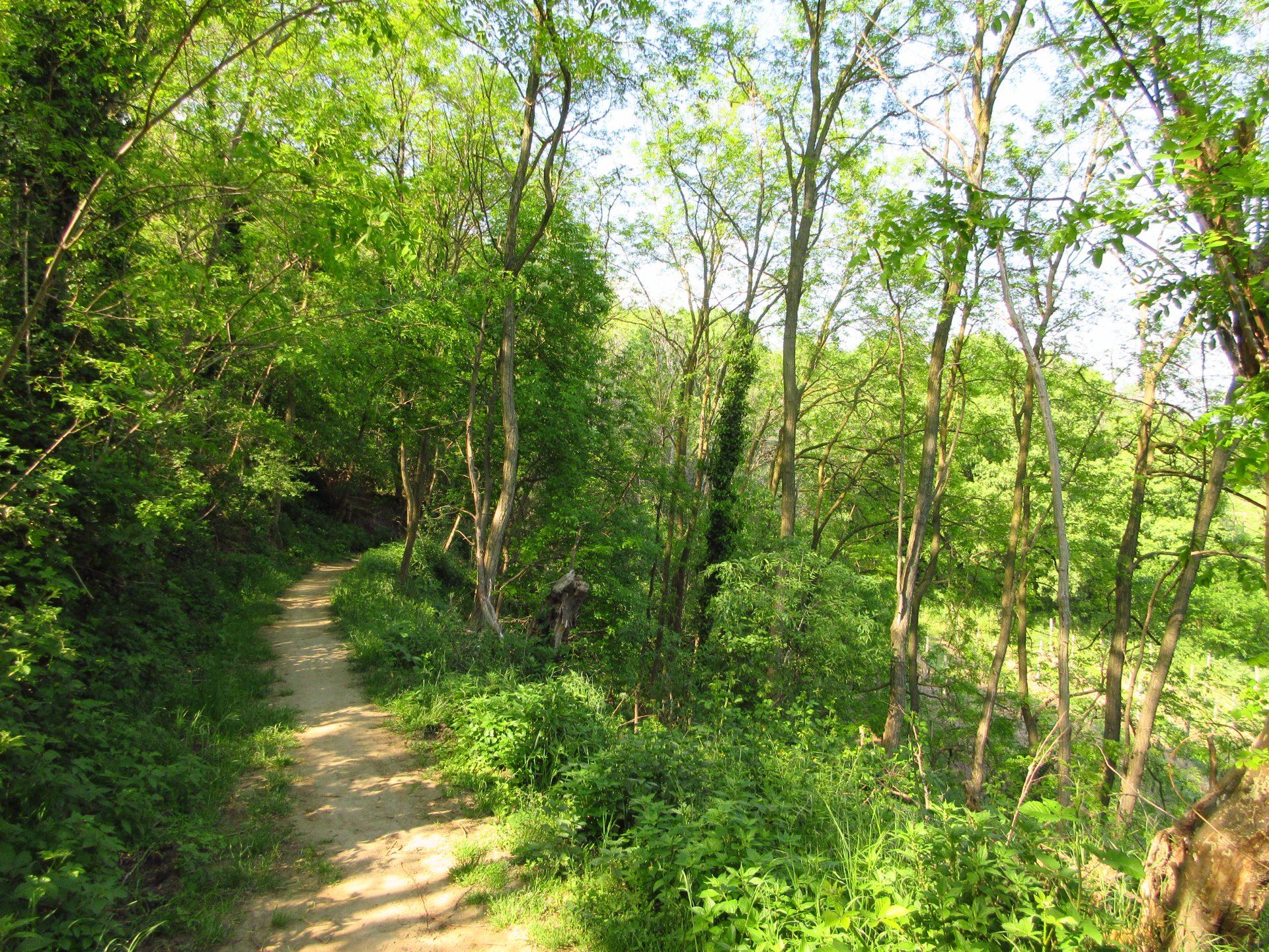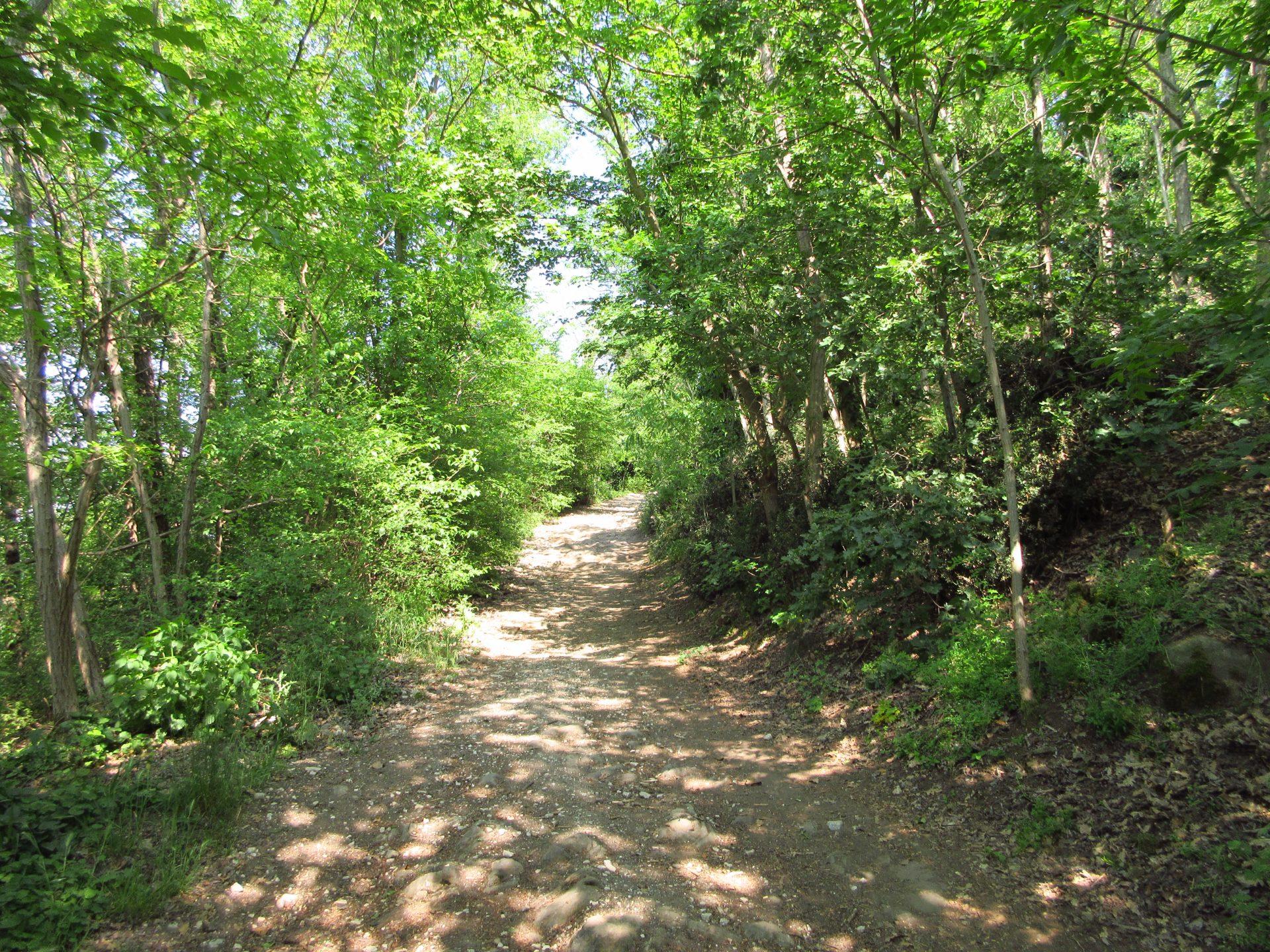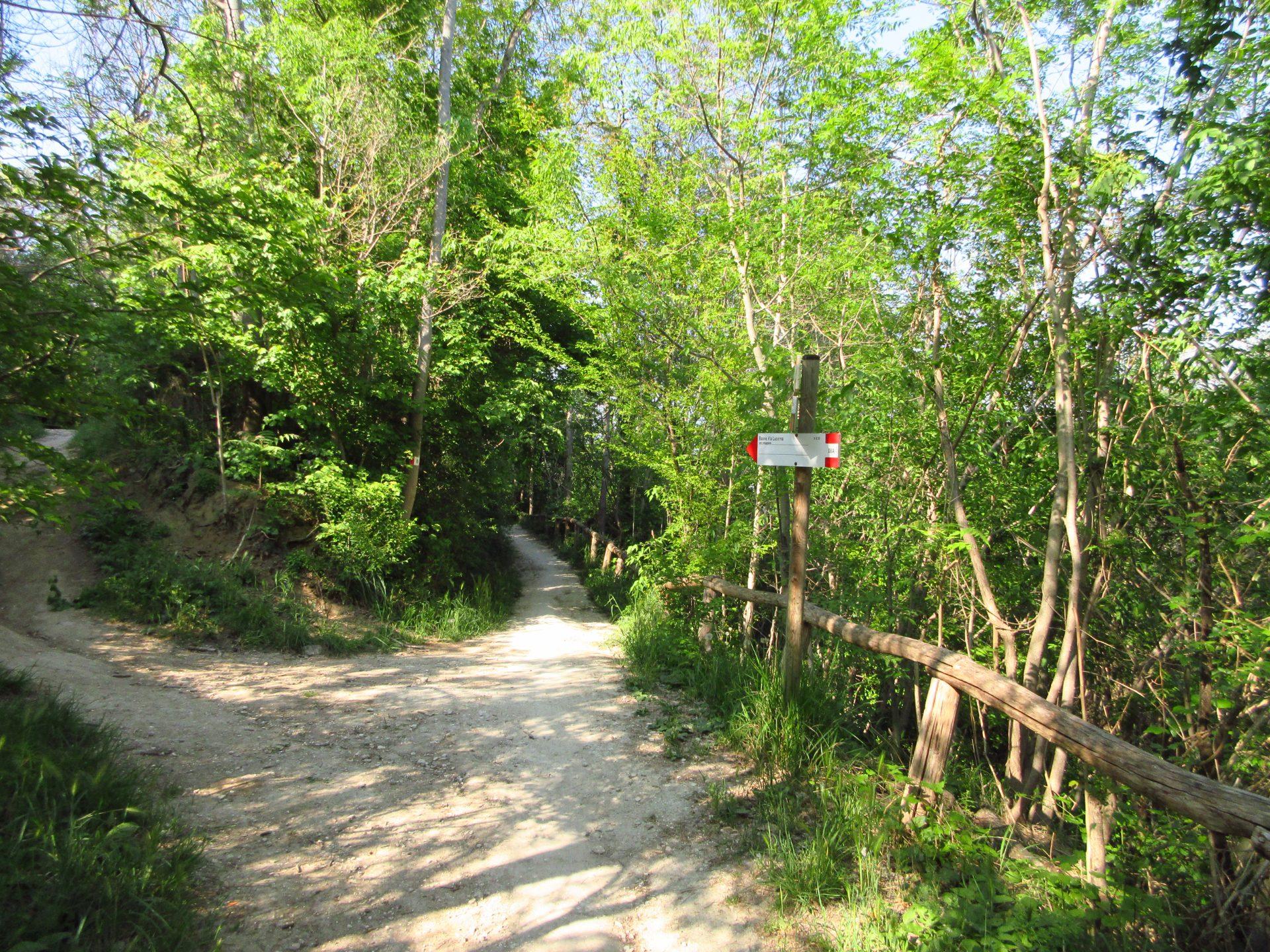Con un’ampia curva verso sinistra il percorso cambia direzione e punta a nord-est. Di tanto in tanto il bosco si apre, lasciando spazio a qualche scorcio sulla pianura.