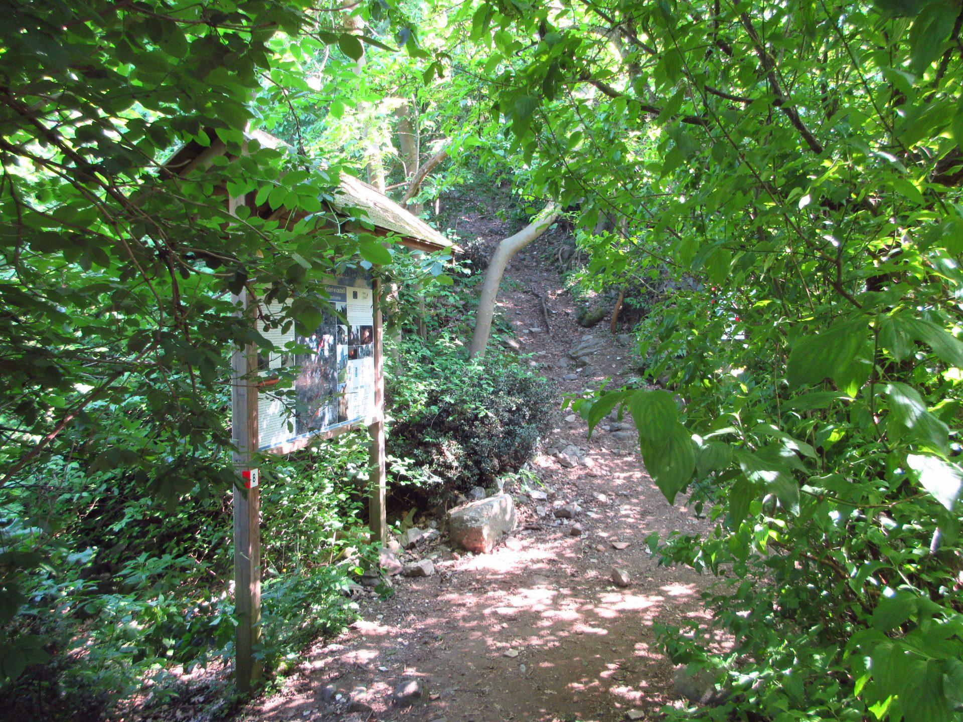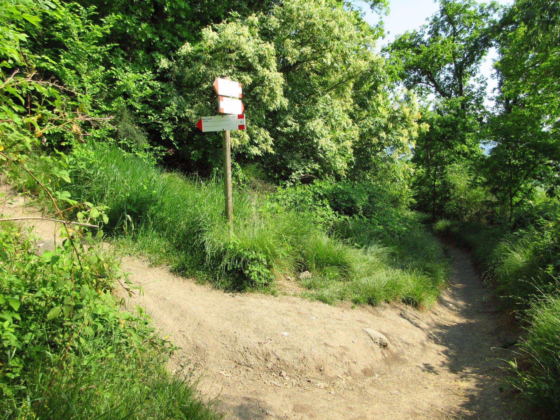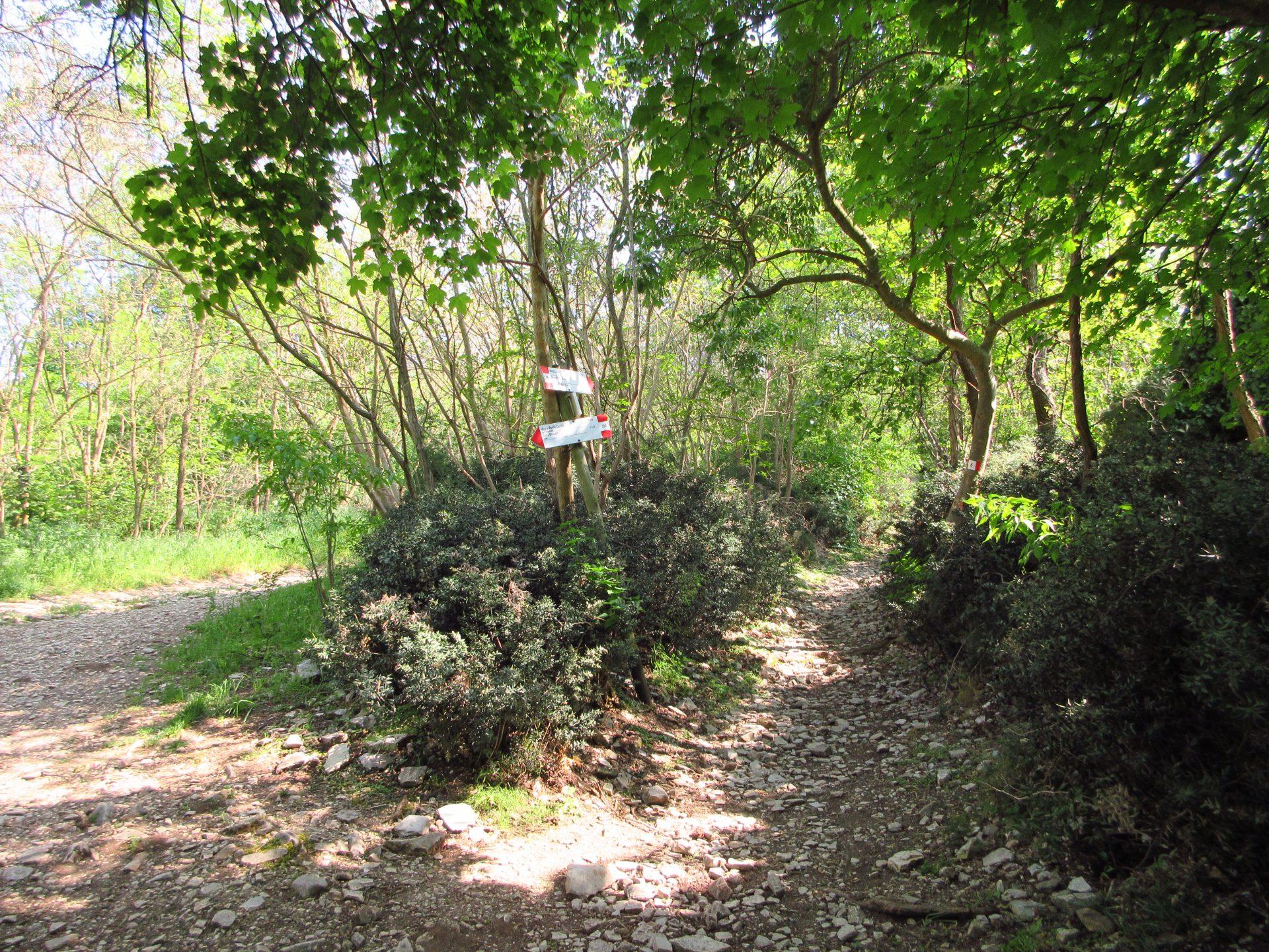 Il sentiero scende ancora per un tratto e, quando ricomincia la salita, si incontra un nuovo incrocio. Anche qui si tiene la sinistra.