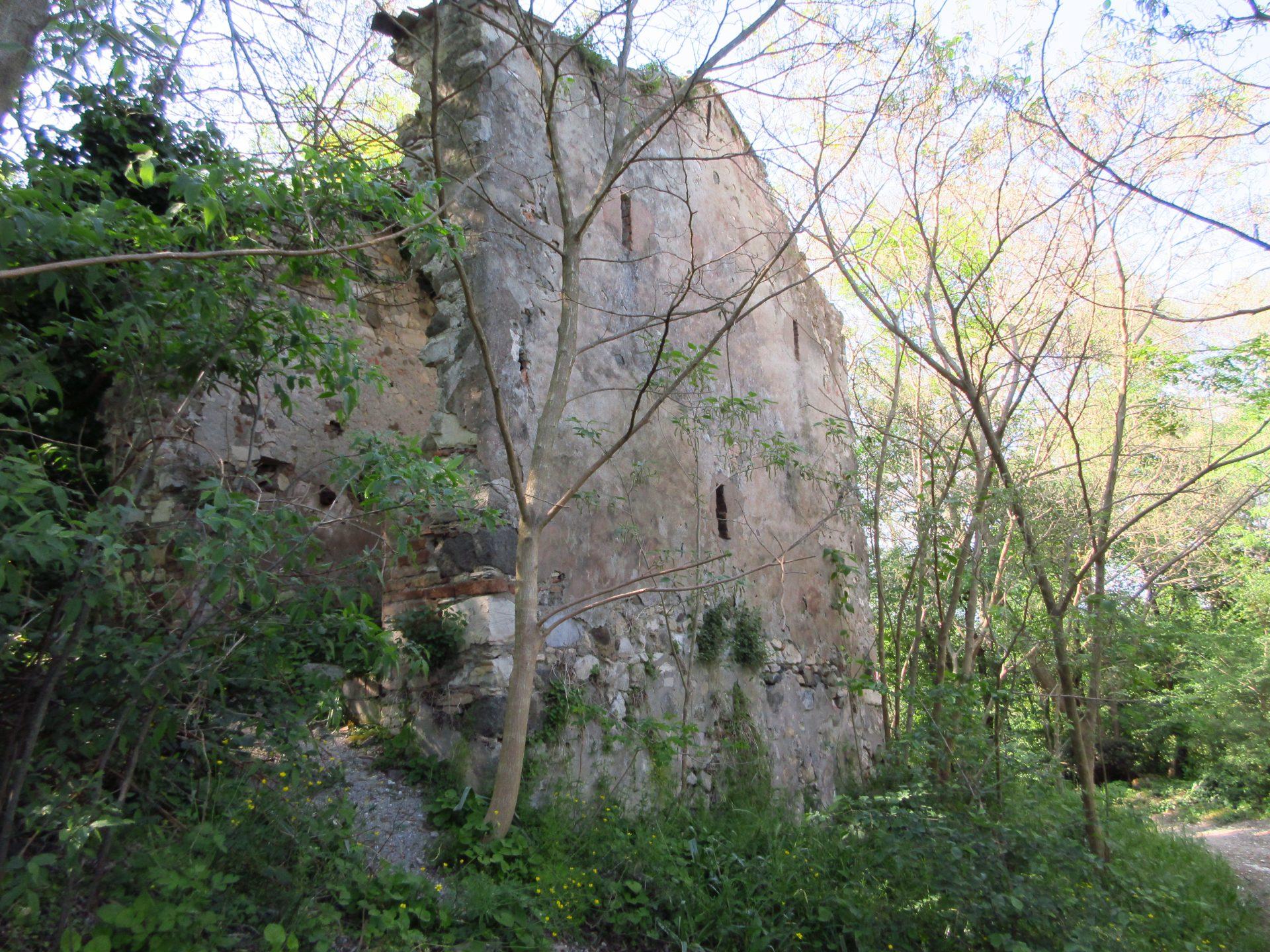 Vi è un campanile dentro del quale vi è un marmo rotto scritto antico nel fondamento che tocca terra, ma dalla parte e sopra la scala dell'eremo un altro marmo rotto con lettere e nel muro della casa di altri marmi scritti rotti, et un grande intiero nella caneva et un segno di ceneri rotto, et in un muro una statua in piedi rotta dal mezzo in su, messa distesa nel muro.
