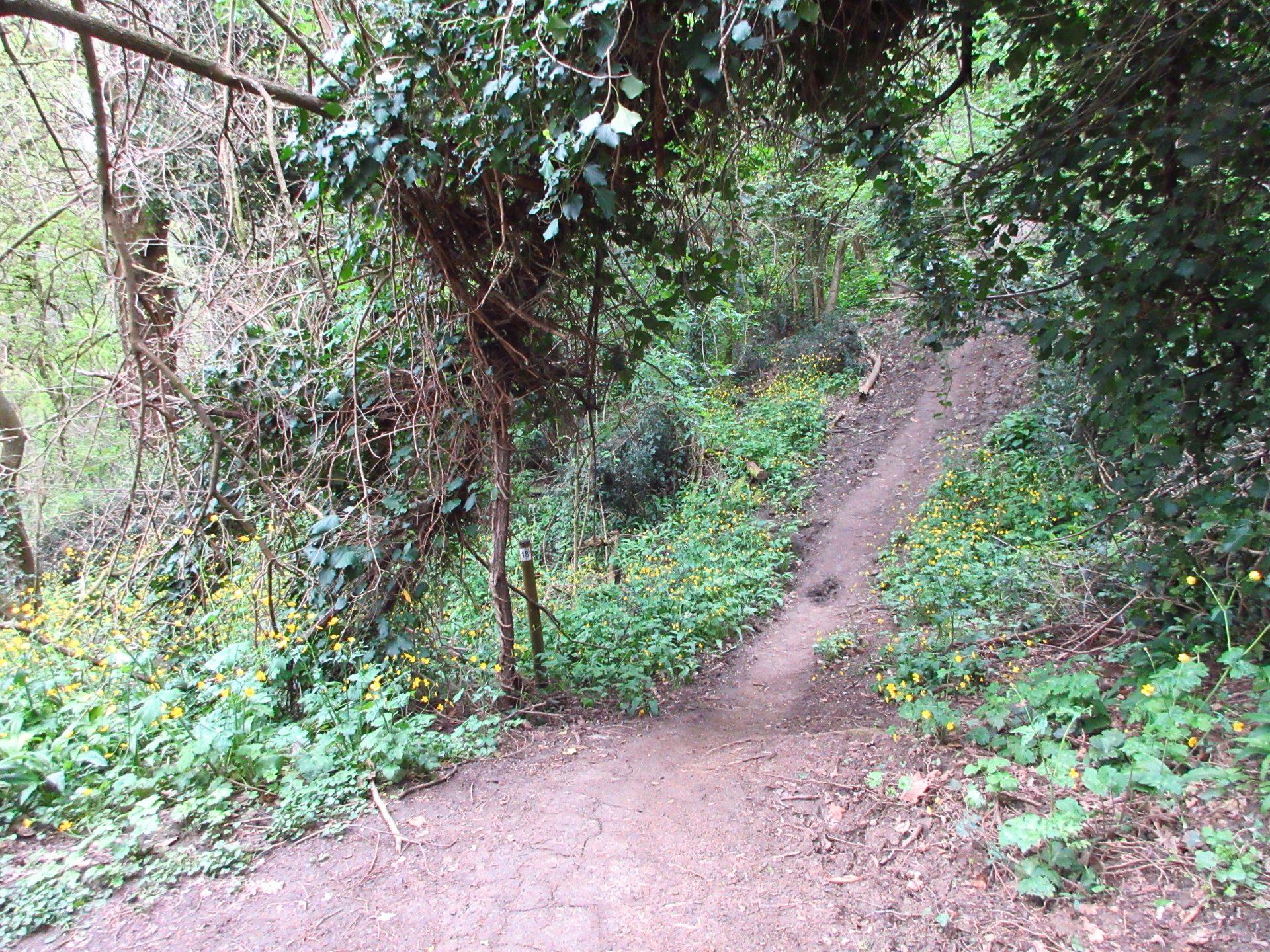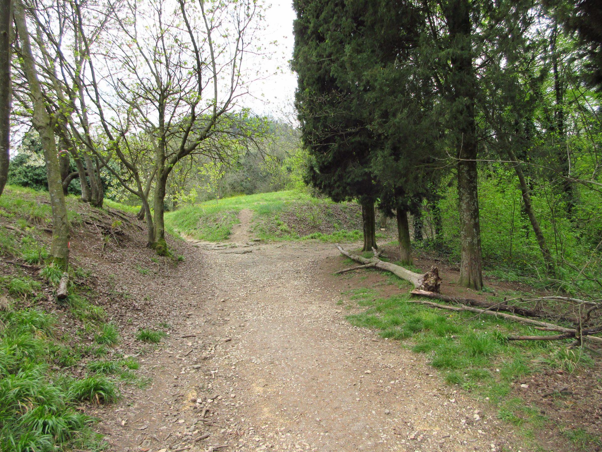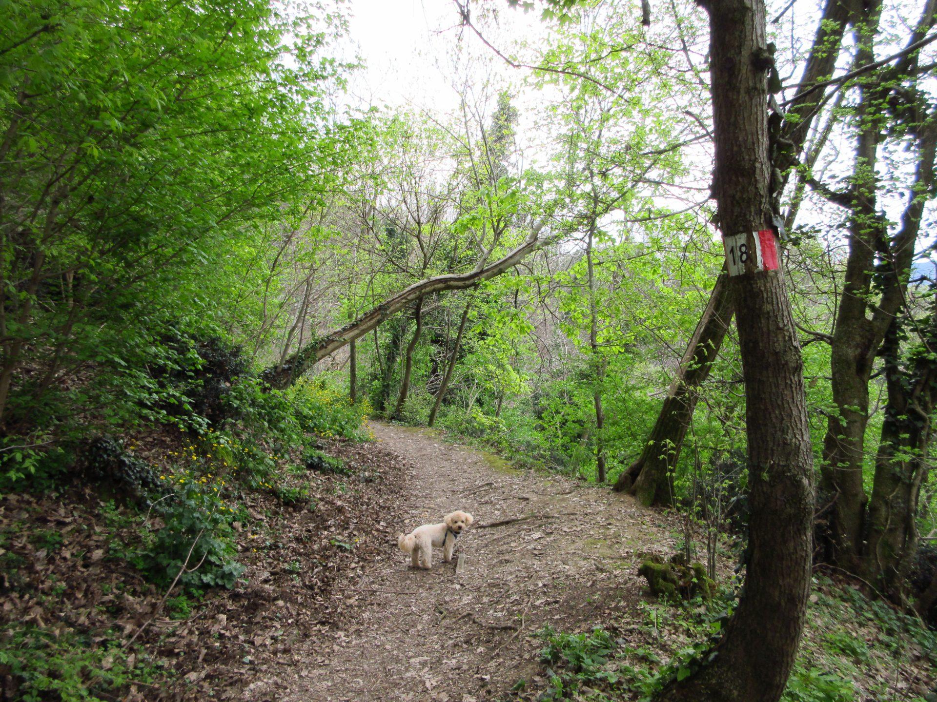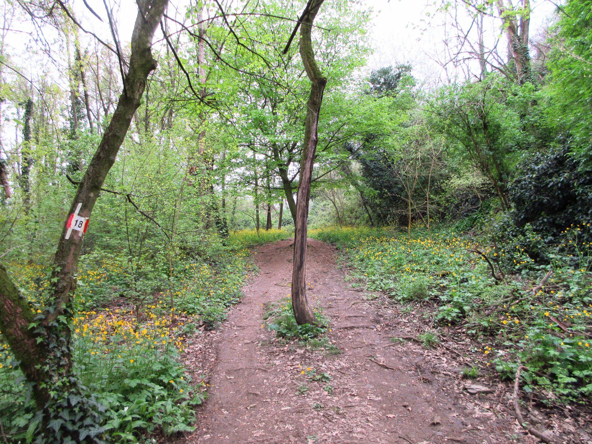 Superato il cancello, si prosegue verso destra in salita. Si raggiunge una radura, spesso utilizzata per i picnic, e si continua seguendo il ben evidente segnavia numero 18.