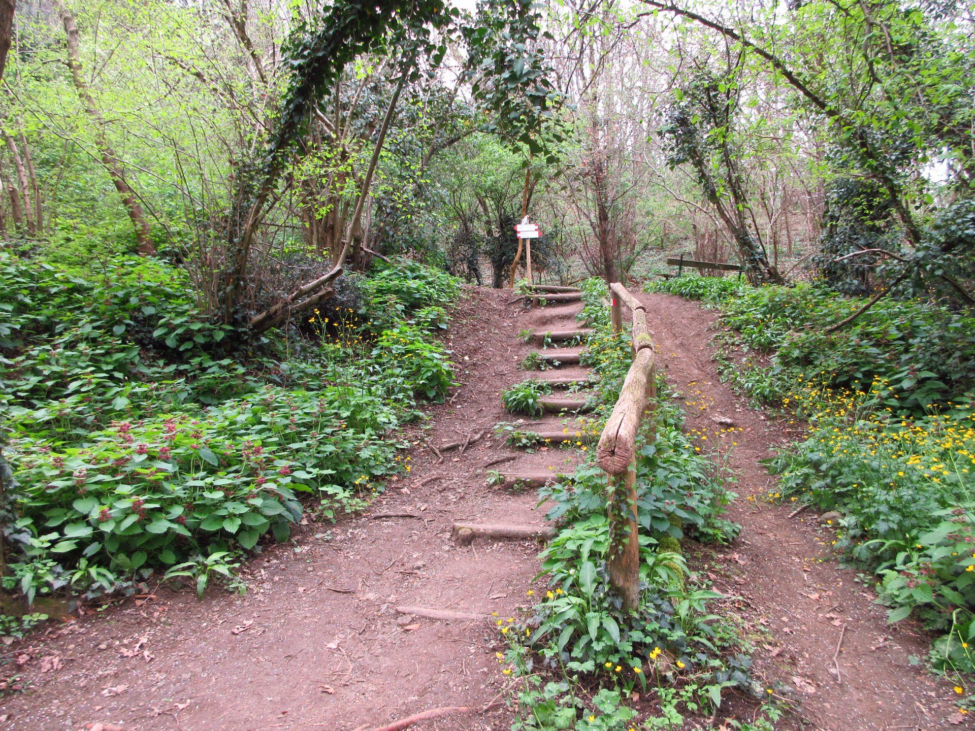 Si arriva quindi a un incrocio che si incontrerà nuovamente anche al ritorno. Qui si salgono le scalette e si prosegue verso destra.