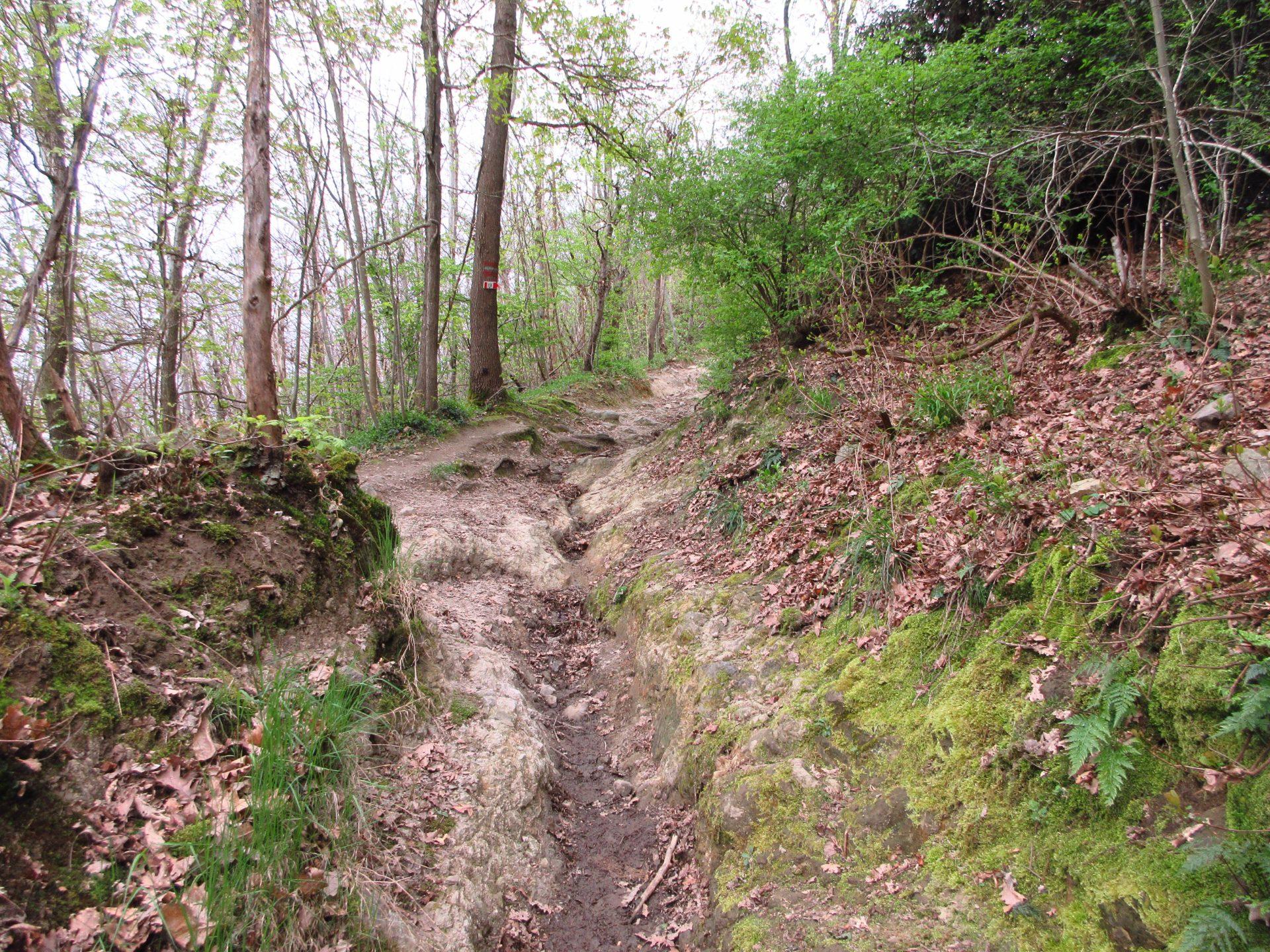 Tornati indietro e proseguendo con l’edificio sulla destra, si raggiunge la Sella del Menauro. Da qui si sale a sinistra lungo il sentiero più ripido e sconnesso, in un tratto dove l’acqua sembra aver trasformato il fondo in una sorta di piccolo torrente.