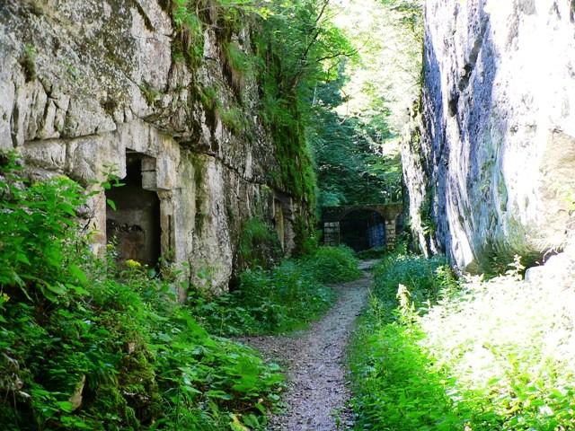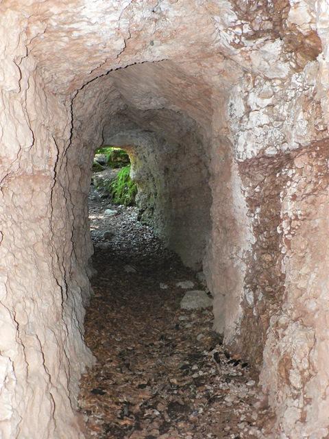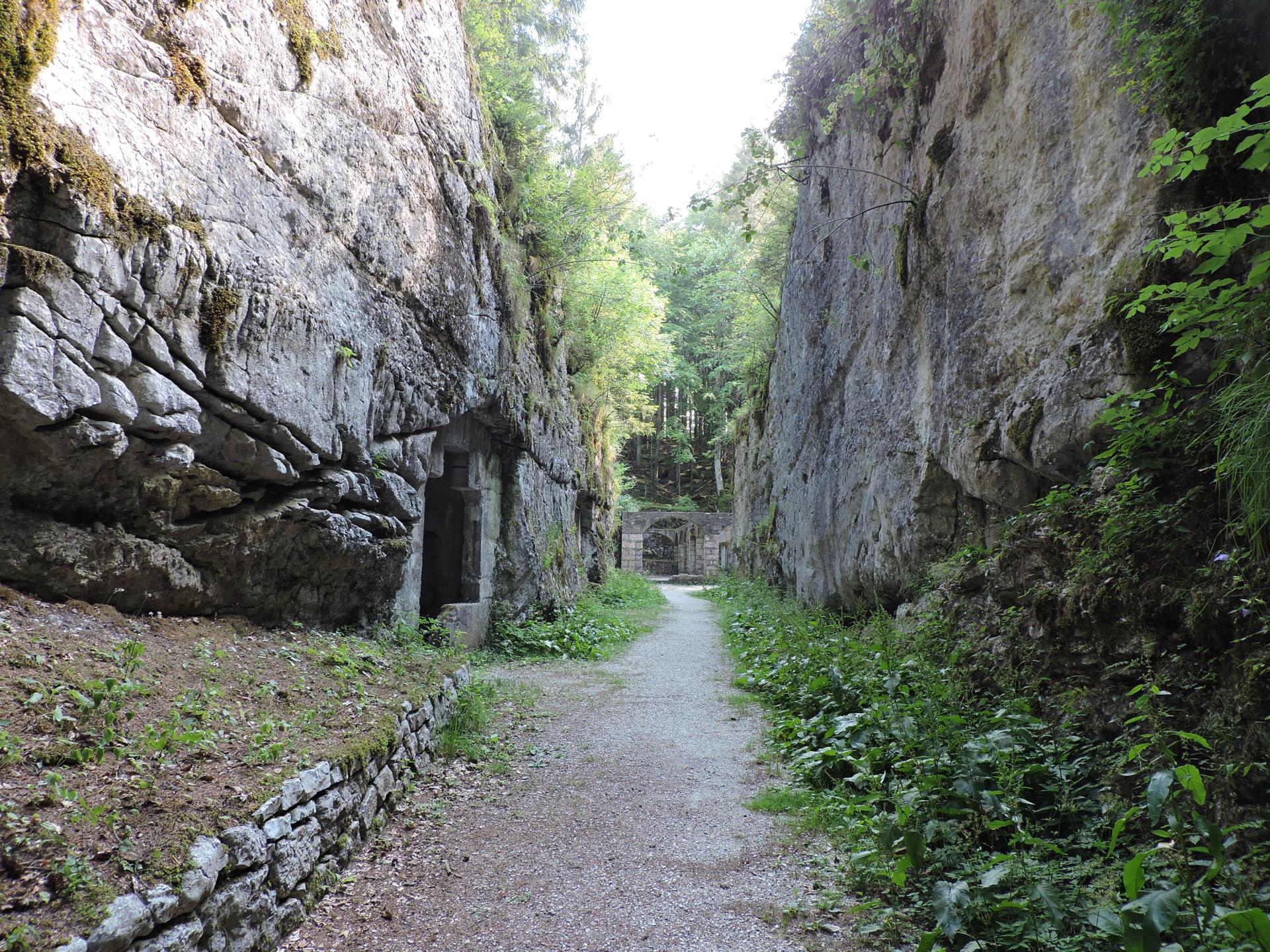 Entrando nella gola, sulla sinistra si trovano delle gallerie, stanze e rifugi contro eventuali bombardamenti.