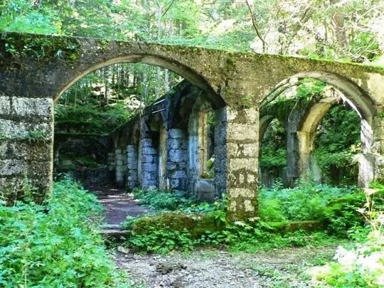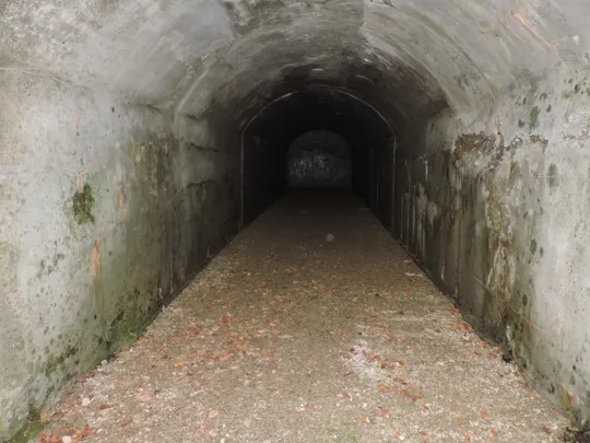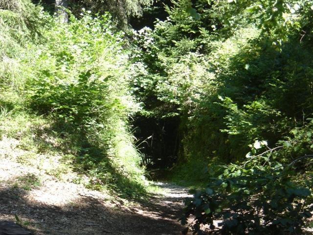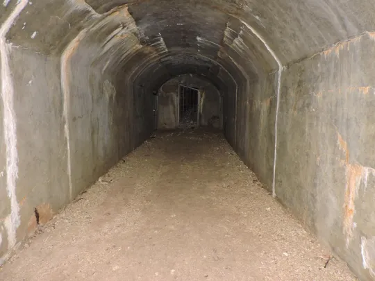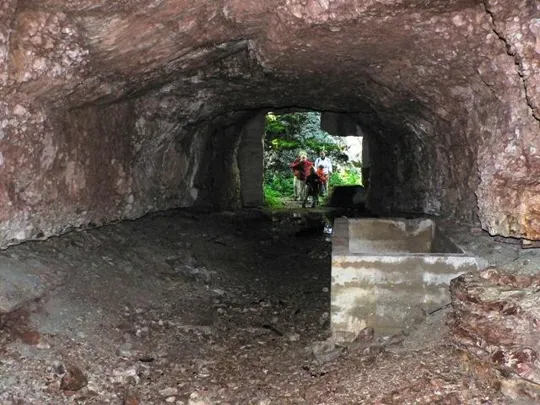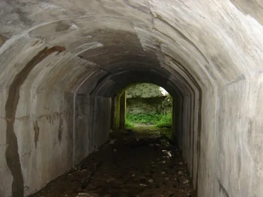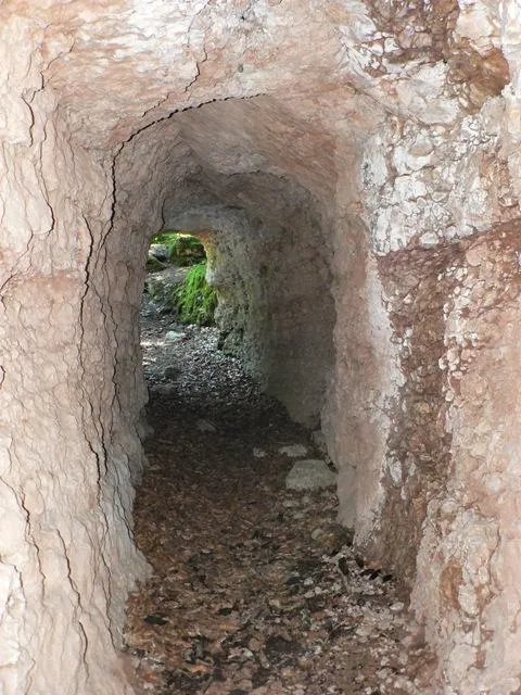 Si cammina lungo una strada militare, poco dopo a sinistra si trova una galleria, forse un passaggio per le guardie.