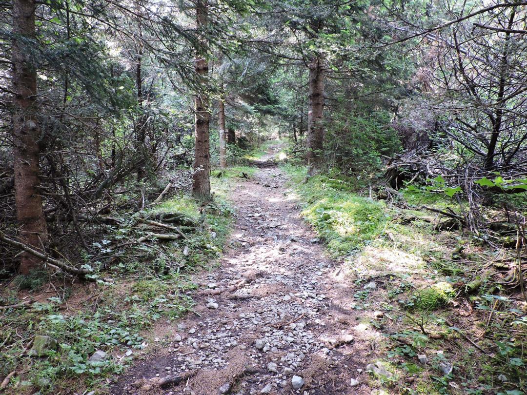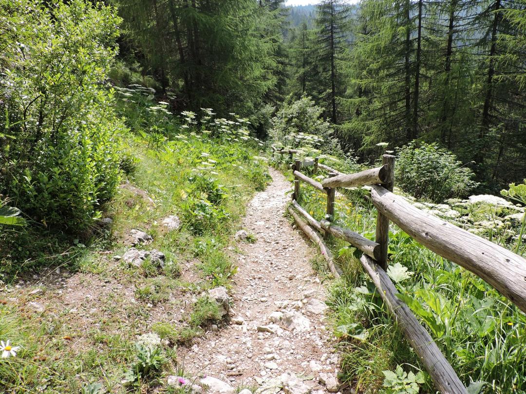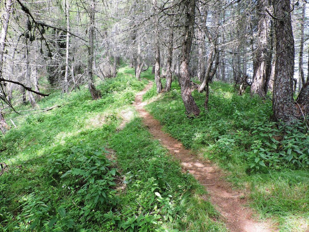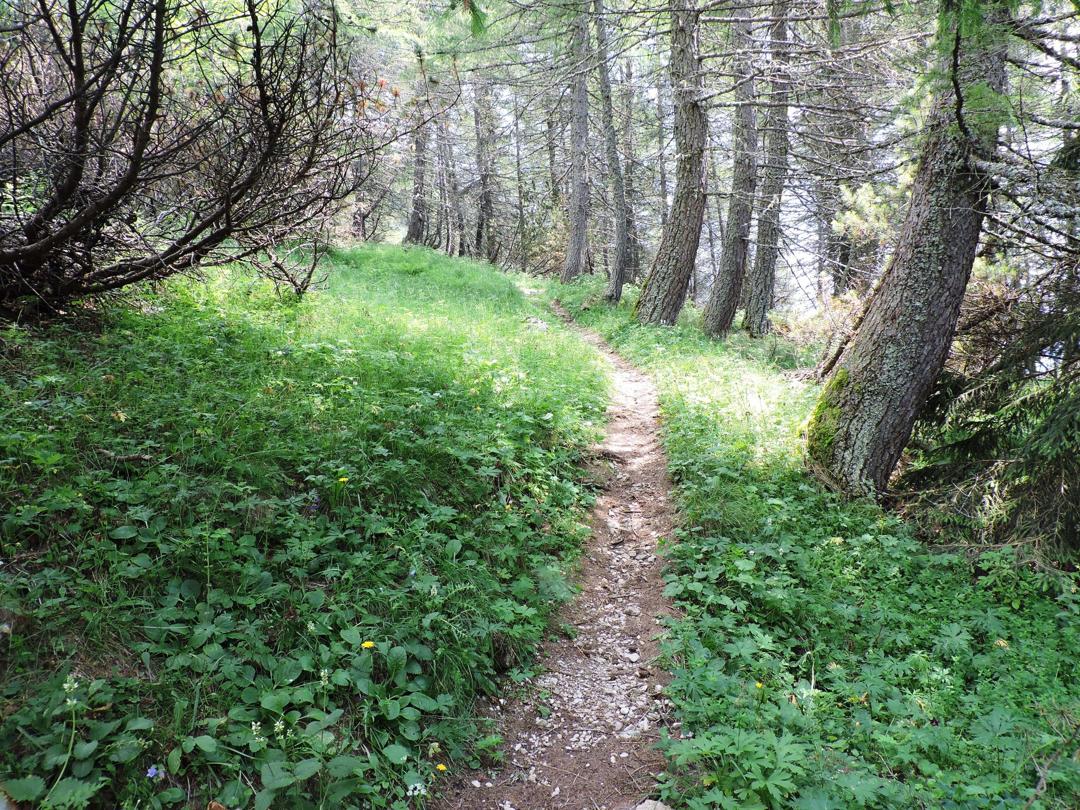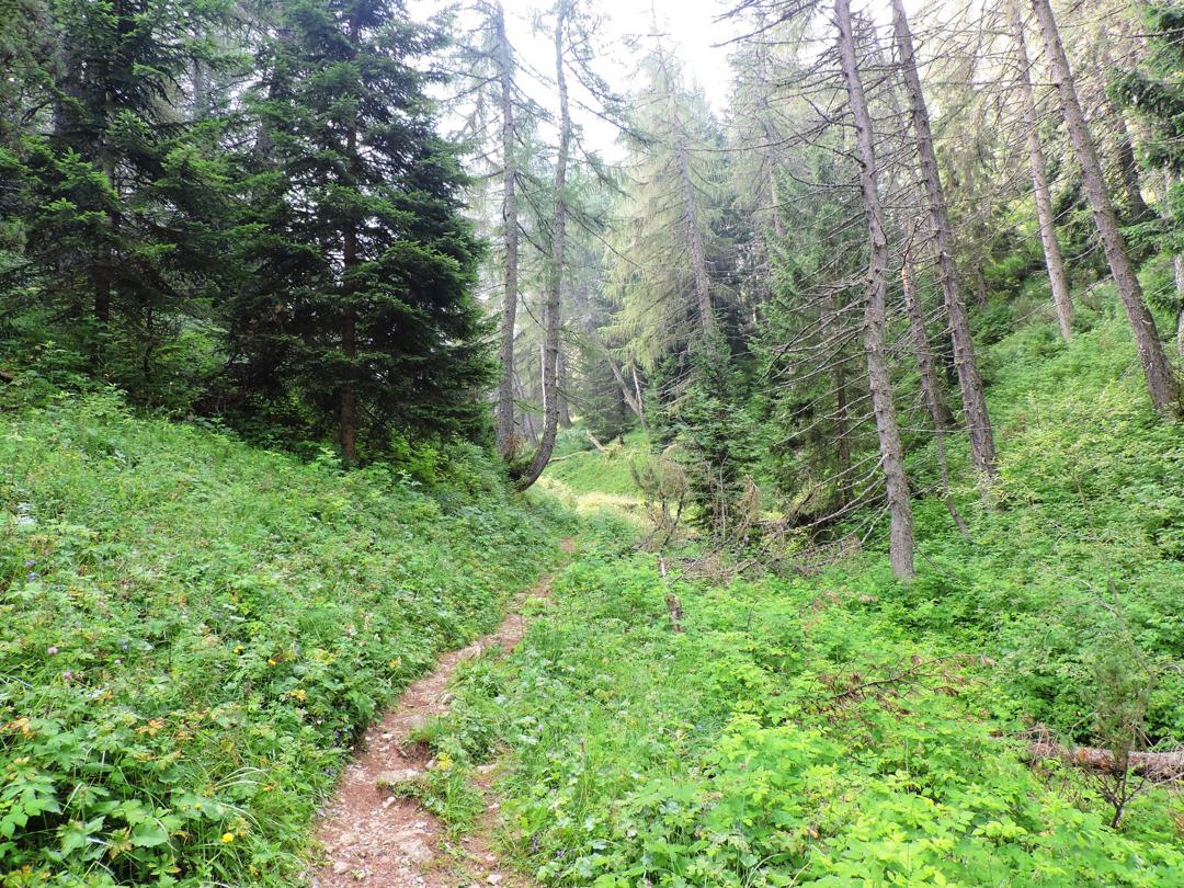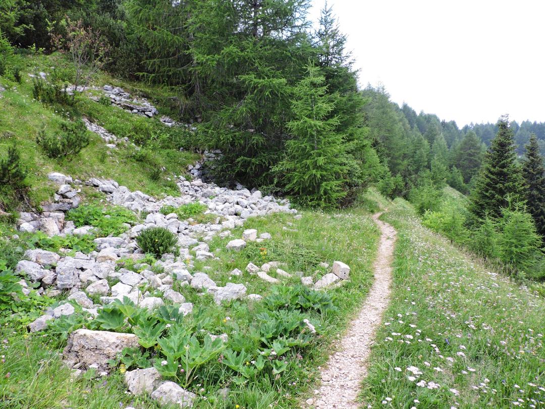 Al termine del bosco si arriva alla radura di malga Zocchi. Il sentiero diventa un po' più fantasioso e difficile da seguire, ma comunque non si può sbagliare.