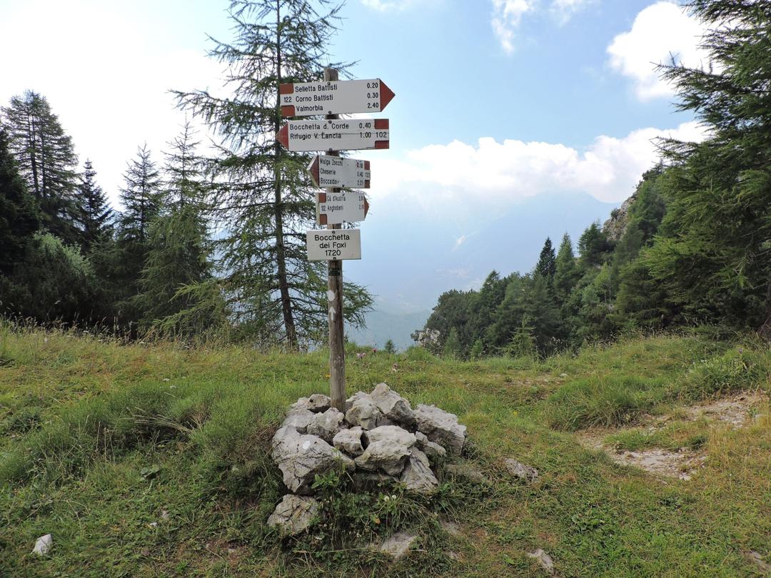 Salendo verso il rifugio Lancia si trova sulla destra il sentiero 122, si passa nei pressi di malga Zocchi fino ad arrivare a bocchetta dei Foxi dove si prosegue a destra seguendo sempre il sentiero 122. Si arriva a Corno Battisti in un'ora e venti minuti.