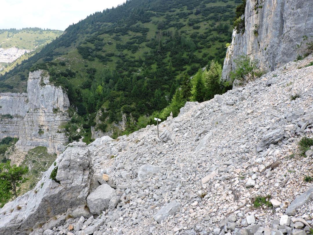 Arrivati sotto al Corno bisogna un po' inerpicarsi lungo un ghiaione. Zona ricca di piccoli reperti bellici.