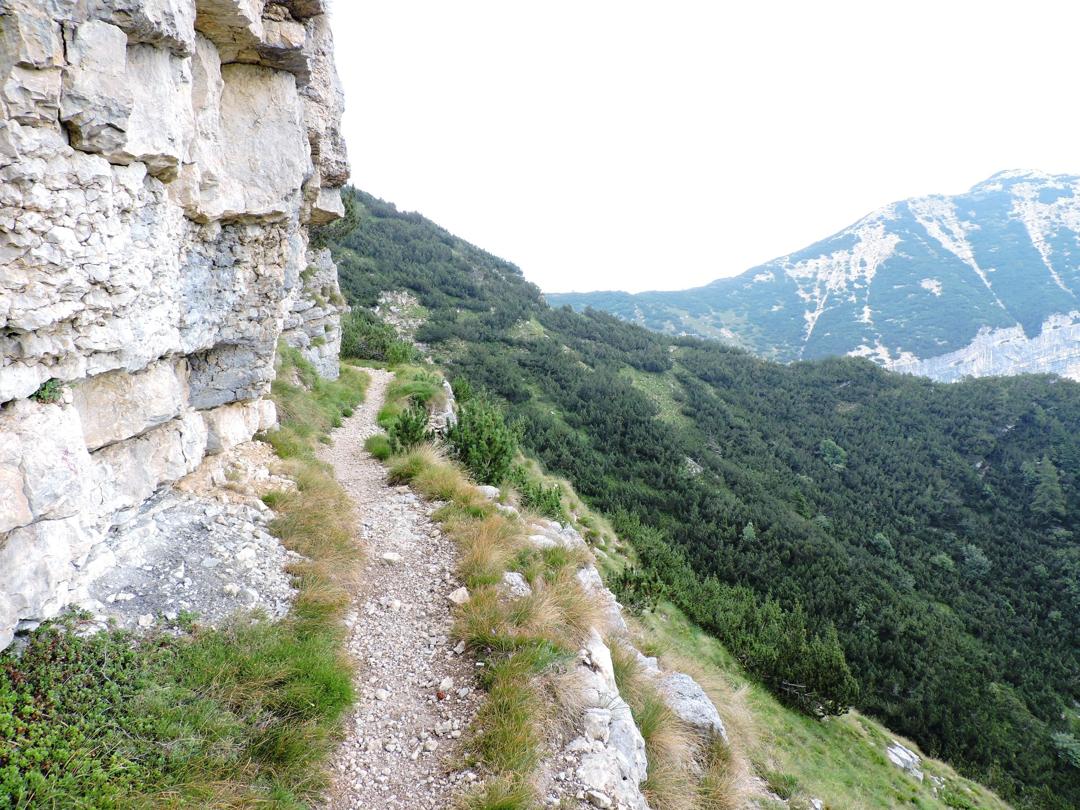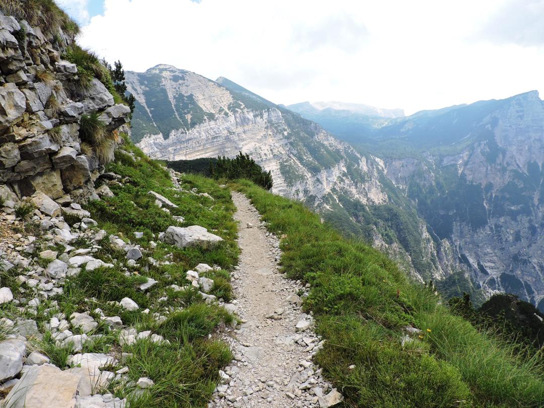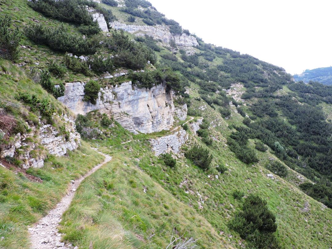 Siamo in vista del Corno Battisti. Il sentiero si fa stretto e pericoloso in quanto molto esposto ad una ripida discesa (per questo è classificato EE).