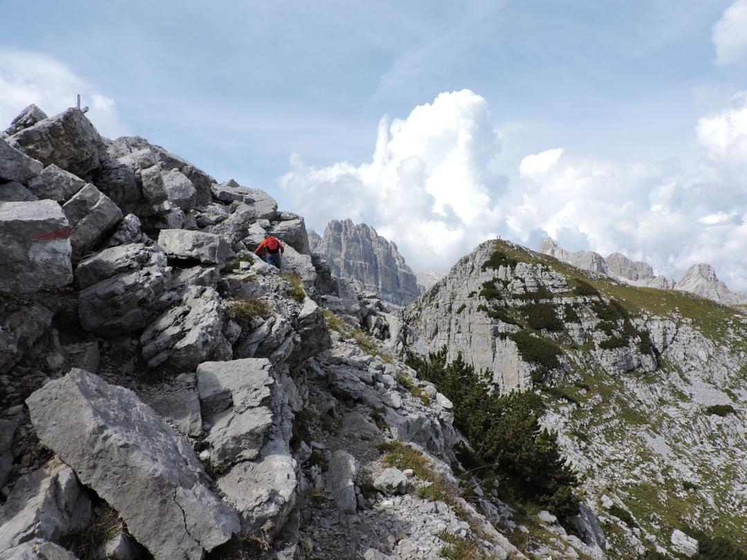 L'ultimo pezzo impegnativo è proprio il passaggio sotto alla cima e il sentiero sulla cima stessa, anche qui bisogna prestare particolare attenzione.