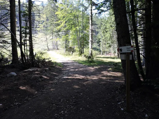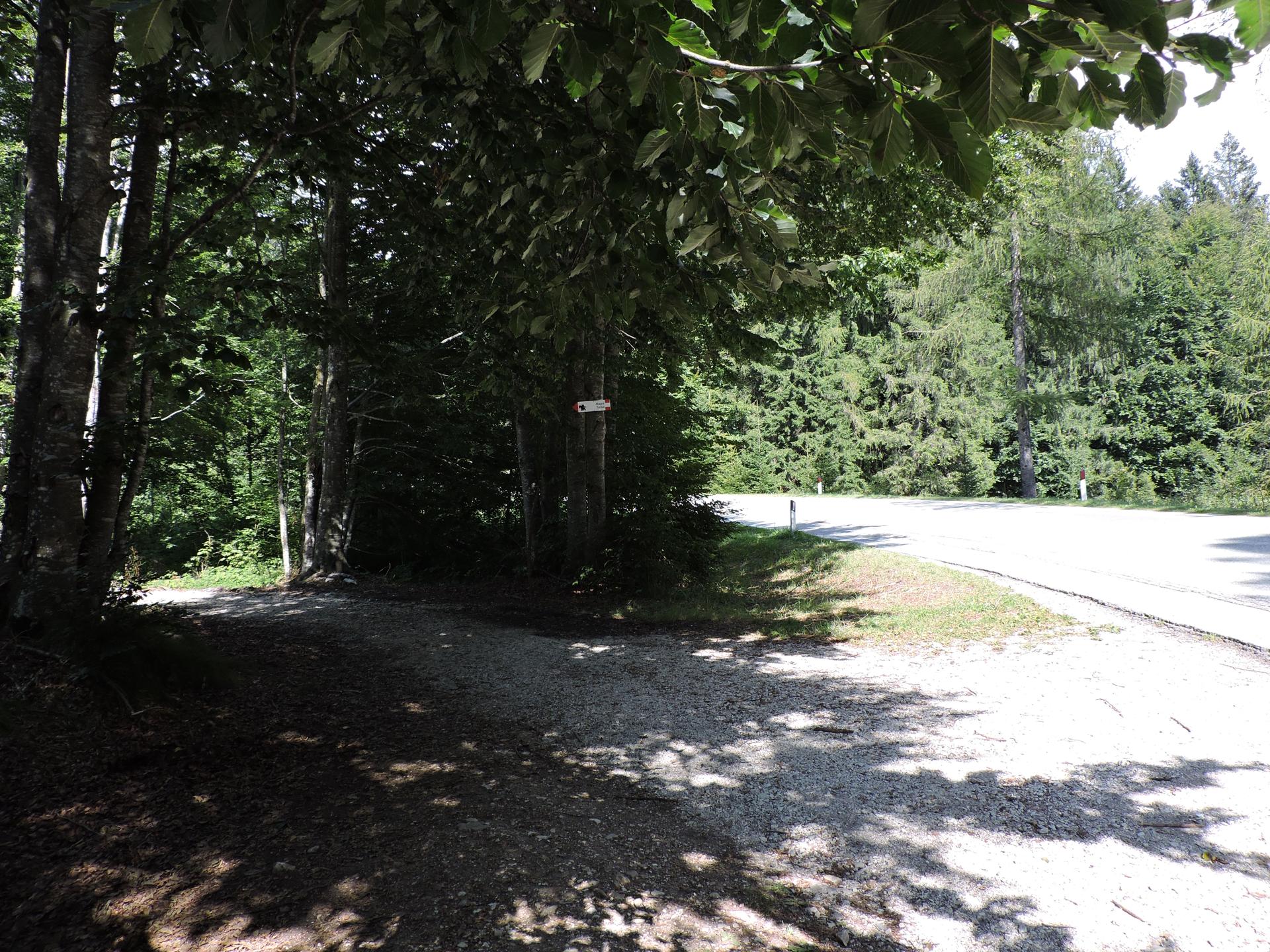 Le indicazioni sono chiare, una tabella con il simbolo del drago indica la strada da percorrere. Dal parcheggio si attraversa la strada e si prosegue a destra per una ventina di metri. Un'altra indicazione ci fa entrare in una strada nel bosco.