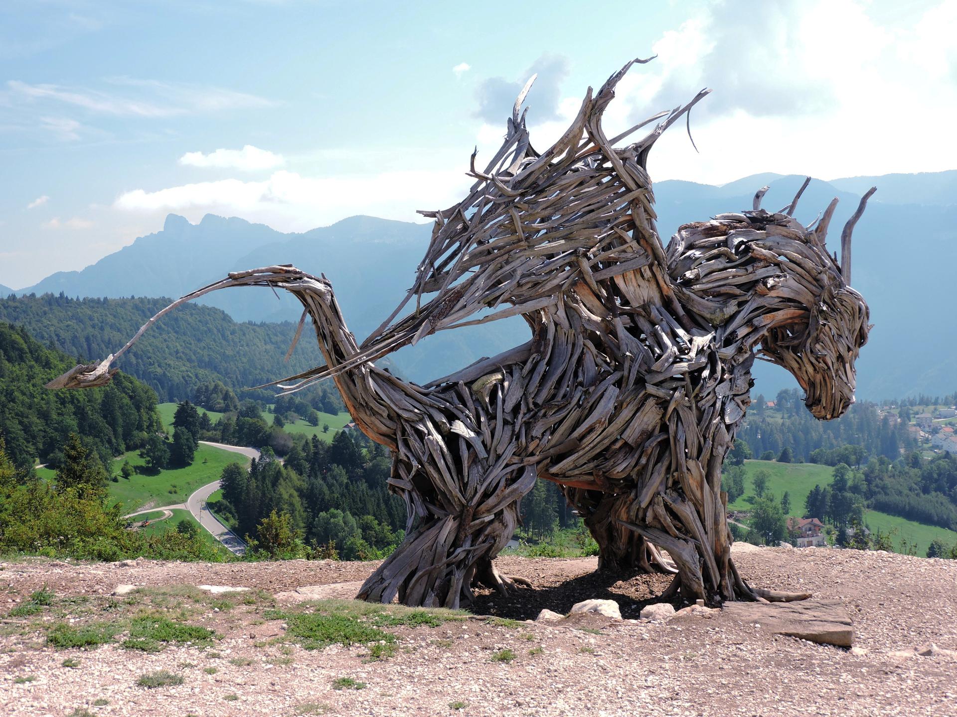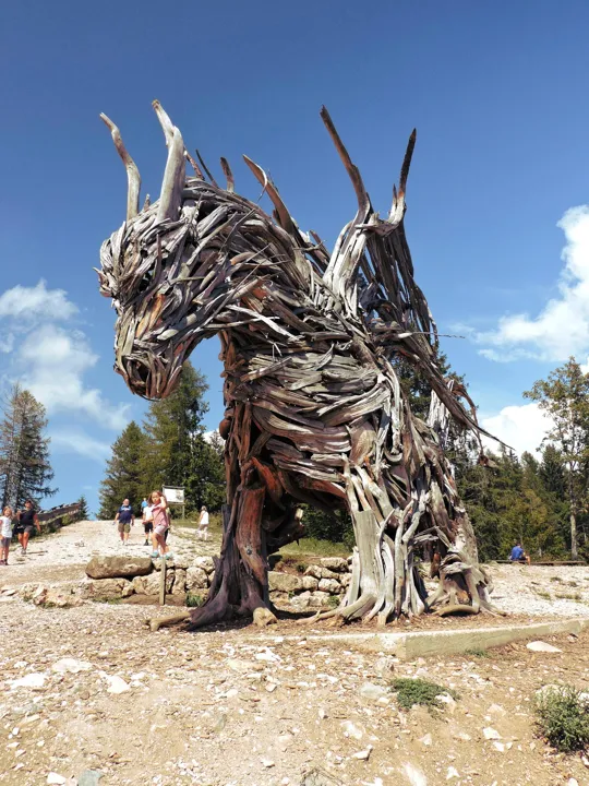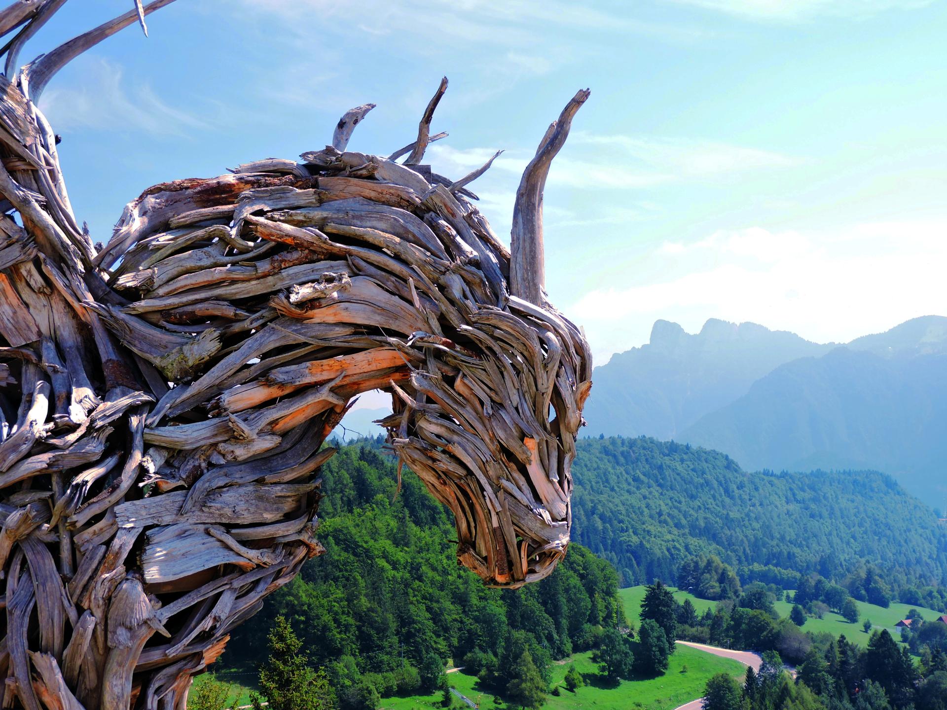 Opera di Marco Martalar, è il Drago in legno più grande al mondo, misura 16 metri in lunghezza e 7 in altezza.