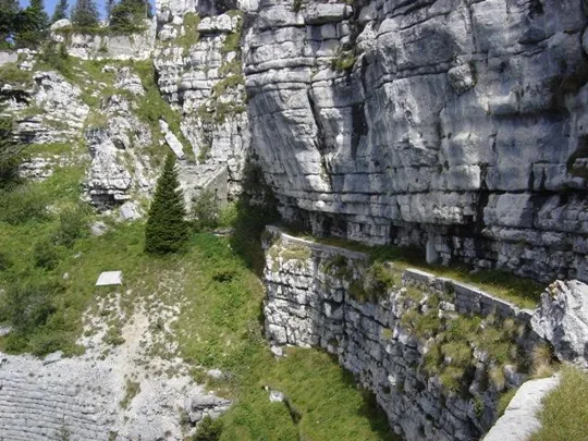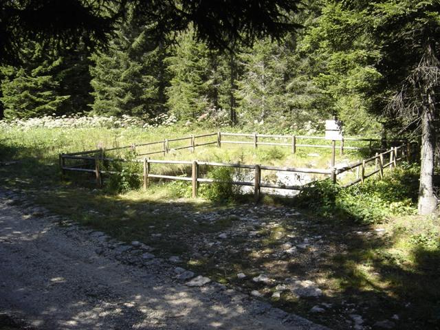 Al ritorno dal forte, scesi dopo due tornanti, si può proseguire per il sentiero ben indicato verso la voragine Sciason, facendo così un anello che vi riporterà alla malga.