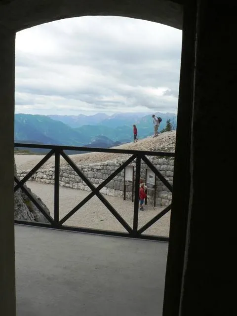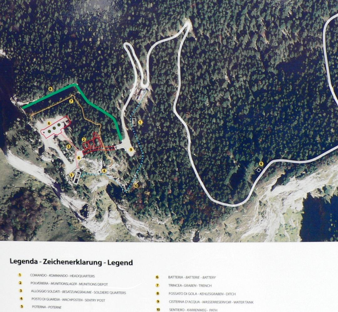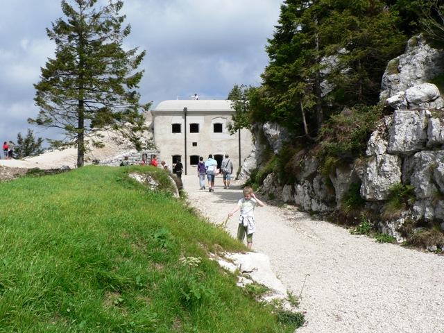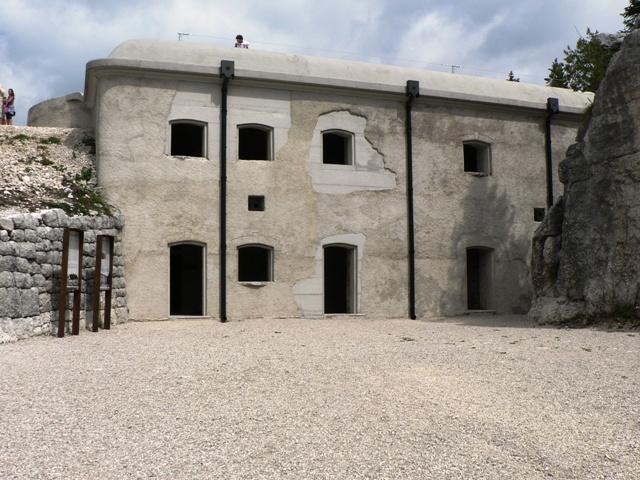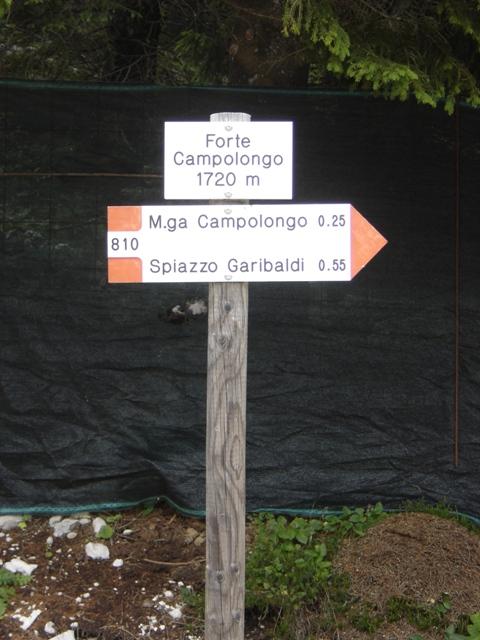 Dopo aver parcheggiato la macchina nell'ampio spazio di fronte al rifugio Campolongo, si torna leggermente indietro per prendere la strada bene indicata che porta al forte.