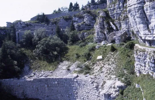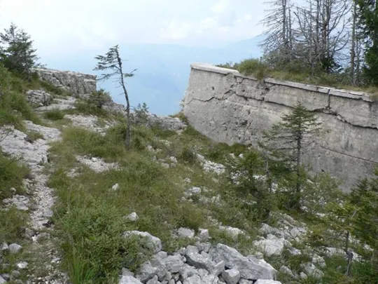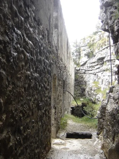 Infine uno sguardo al muro perimetrale che lo proteggeva da eventuali attacchi di fanteria, che si sviluppava dalla costa della montagna fino alla galleria d'ingresso. Questa parte della struttura non è stata restaurata ed è comunque una parte fondamentale per la difesa del forte stesso.
