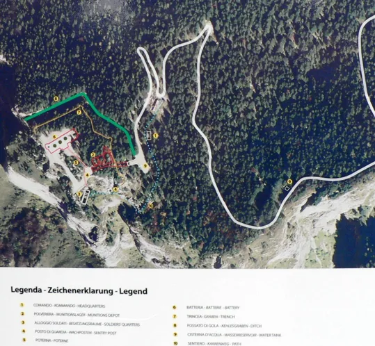- installazione di bacheche e cartelli guida esplicativi per illustrare al visitatore le caratteristiche, gli scopi e la storia delle opere militari;