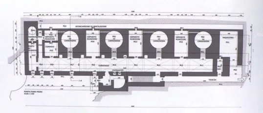 Subito dopo la galleria con la scalinata si trova la S.Barbara (il deposito munizioni) costruita con la classica struttura a doppia stanza situata nel posto più sicuro del forte.