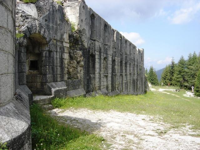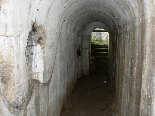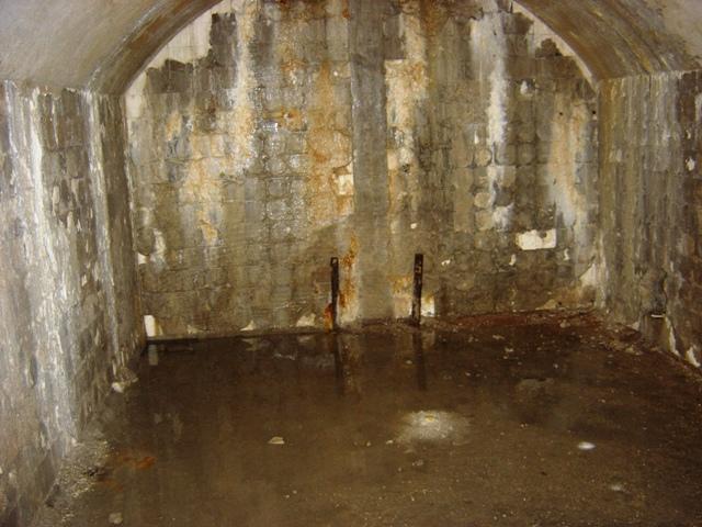 Un passaggio sbarrato permette l'accesso ai sotterranei (a vostro rischio) verso il cofano di difesa del fossato e nelle riservette delle munizioni. Gli Austroungarici non costruivano le S.Barbara come nei forti Italiani, erano stanze più piccole. Ma a pensarci bene noi avevamo anche munizioni più grosse, i nostri calibri erano da 149 contro i loro 105.