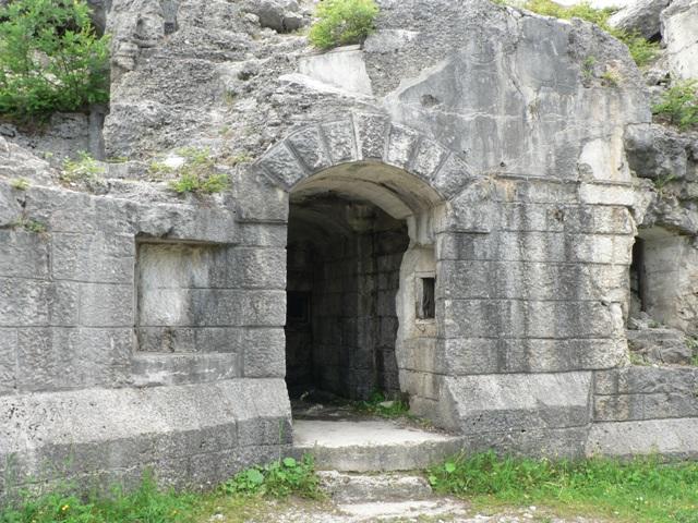 L'ingresso è bello da studiare un po'. Un grosso portone d'acciaio doveva sigillare il forte, ma alcune feritoie per fucilieri sicuramente avrebbero ostacolato l'avvicinarsi del nemico, se solo fosse riuscito ad avvicinarsi Tra reticolati, fossato, colpi di mortai, mitragliatrici, e fucilieri sempre pronti come si faceva ad avvicinarsi? Beh, magari non qui, ma il valore e il coraggio che hanno avuto i militari di ambo le fazioni è sempre da ammirare .... vi consiglio di leggere qualche libro in merito per capire come vivevano, soffrivano e come erano in grado di affrontare ogni avversità.