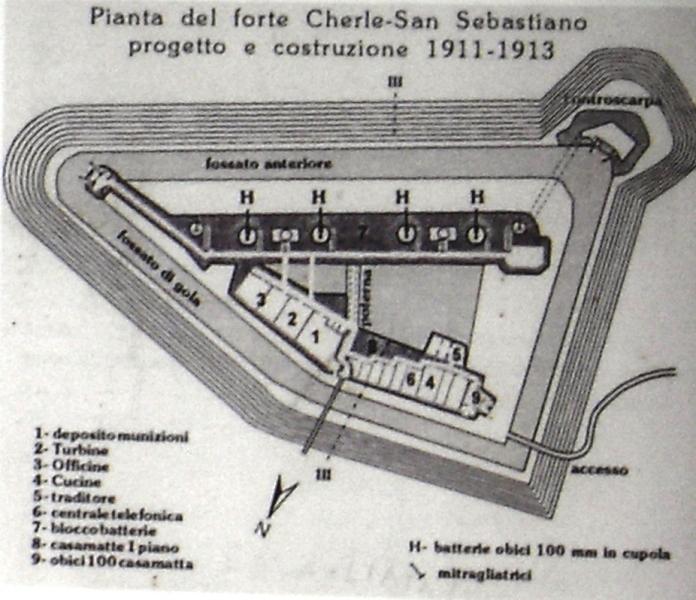 Il forte a pianta triangolare è stato smantellato per il recupero del ferro nel periodo tra le due guerre. Comunque da l'idea della complessità e della magnifica struttura.
