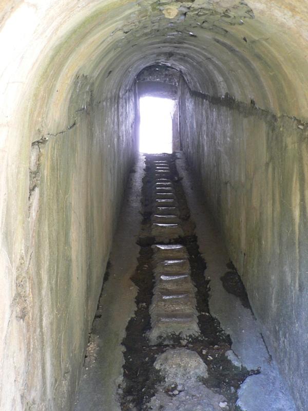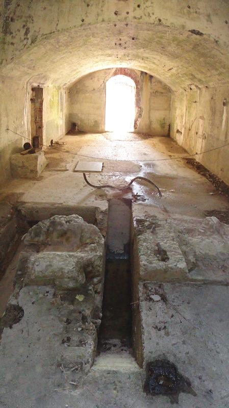 Per portare le munizioni dalla S.Barbara ai cannoni si utilizzavano dei carrelli su binari e anche due montacarichi. Le tracce dei binari sono evidenti.