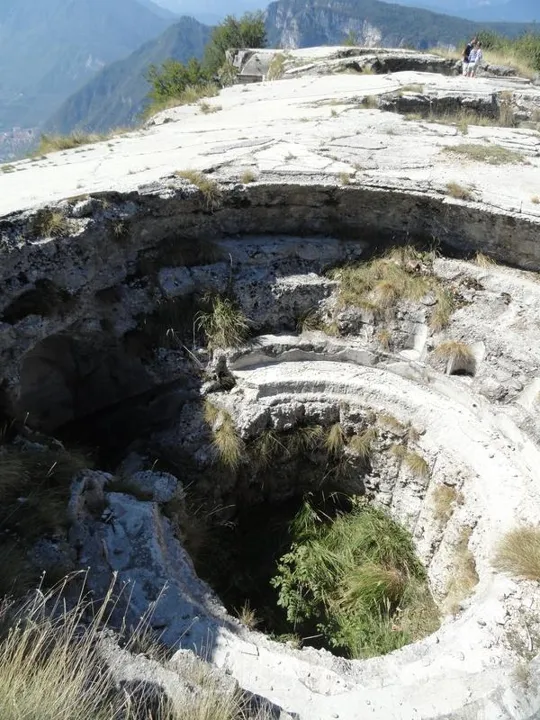 Tracce dei coni di scoppio dell'artiglieria austroungarica e area pic-nic.