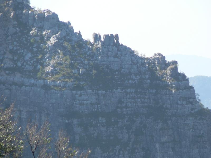 Nella foto sottostante una strana formazione rocciosa che si può vedere rivolgendo lo sguardo verso sud, in direzione del Monte Cengio. Viene indicata popolarmente "i omeneti" perché fa pensare a degli uomini in piedi uno vicino all'altro, ma viene anche detta dagli abitanti della Valle dell'Astico "Capel de fero".