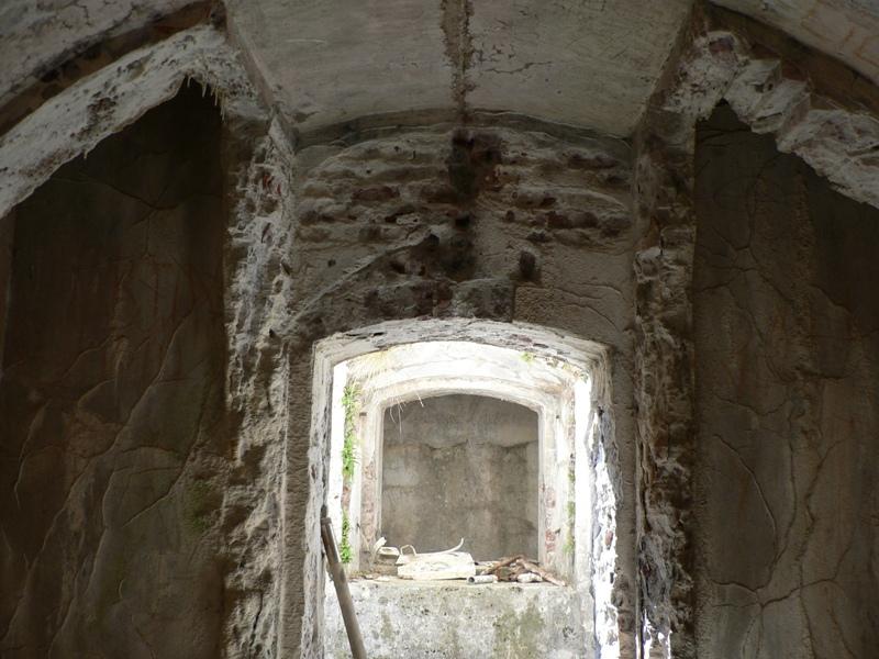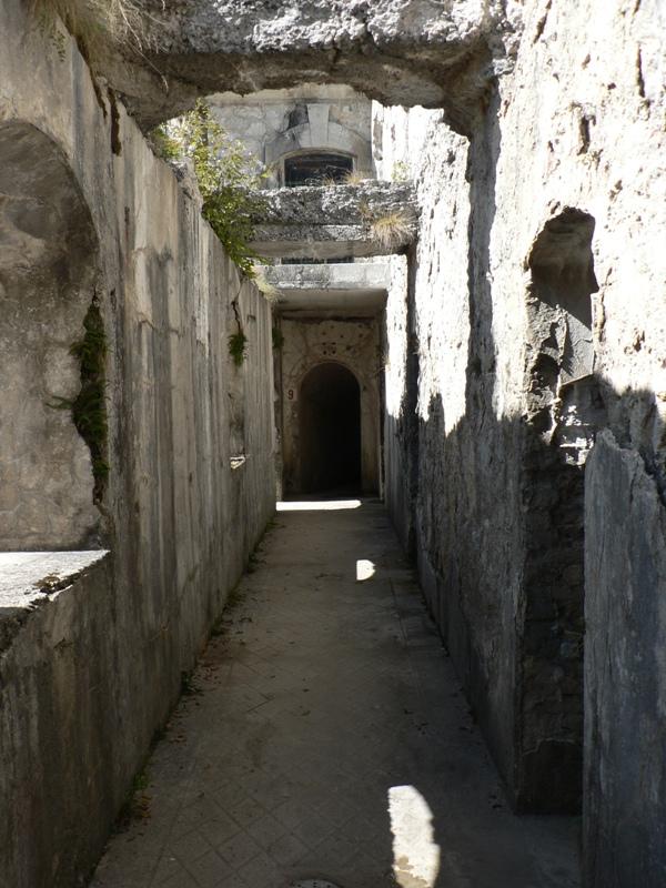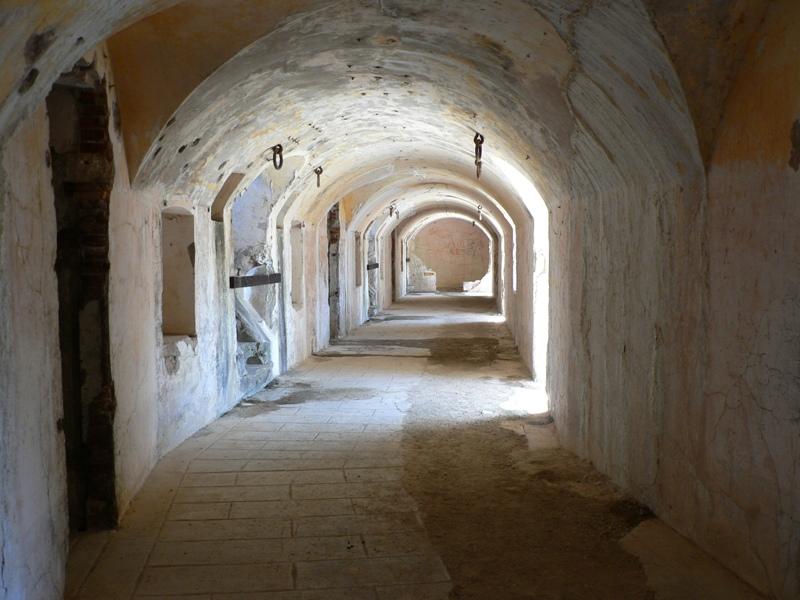 Il corridoio superiore con gli accessi ai cannoni e le riserve per le munizioni.