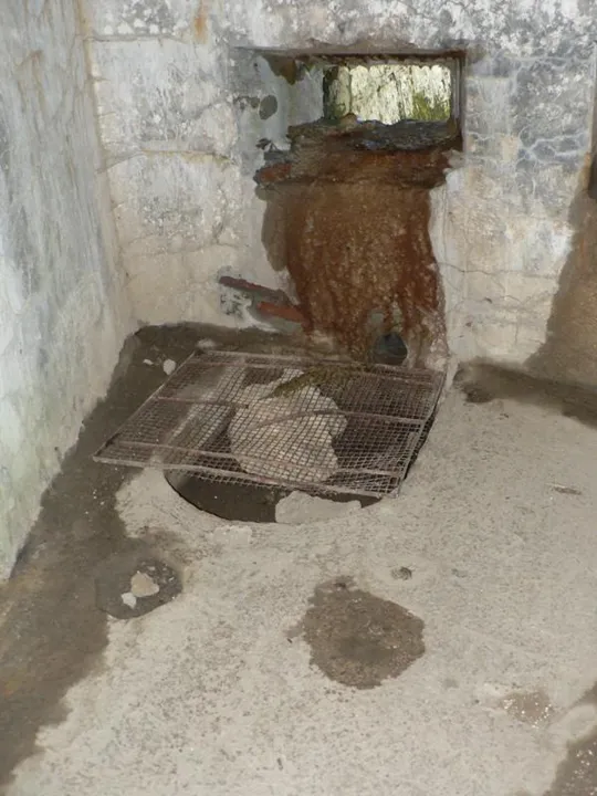 Fossato anti-uomo. Doveva essere un ostacolo micidiale per un eventuale aggressore, una volta entrati si rimaneva sotto il tiro della mitragliatrice del cofano a guardia del fossato.
