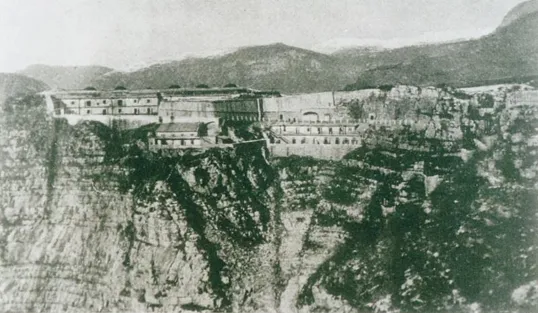 Questa è la foto storica migliore, sono evidenti dettagli non più presenti, come il muro di contenimento detto bastione.