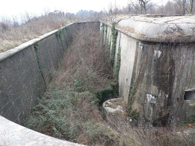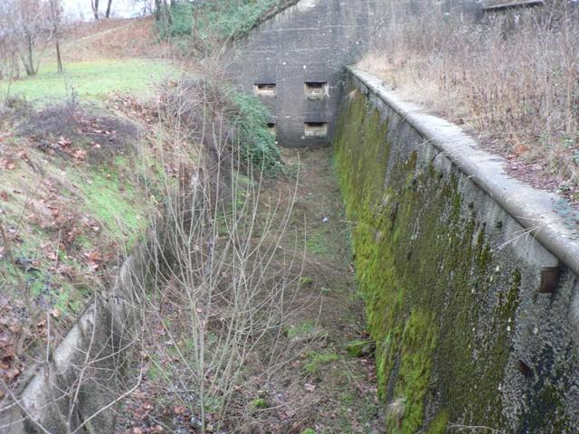 Nel fossato sono ben visibili le feritoie di difesa dello stesso per fucilieri o mitragliatrici. Sono raggiungibili attraverso una galleria (a sinistra entrando nel forte) ma che era allagata.