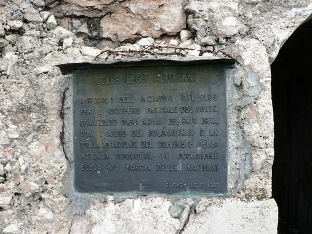 Una tabella ricorda il recupero parziale del forte da parte degli alpini, e una scritta parziale dell'epoca del forte che cosa voleva indicare?