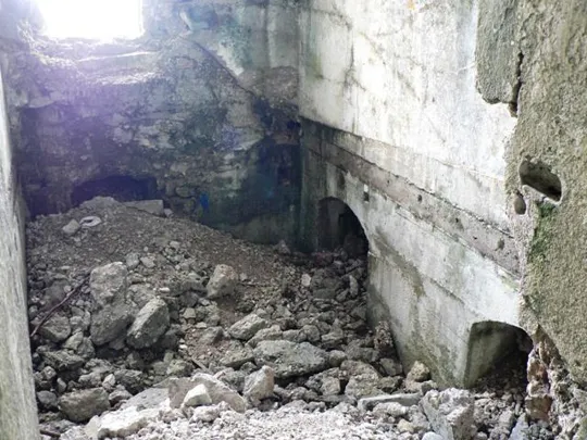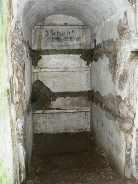 Alcuni particolari interessanti, una feritoia per fucilieri con ancora la protezione in metallo e, forse, la camera mortuaria per tre bare.