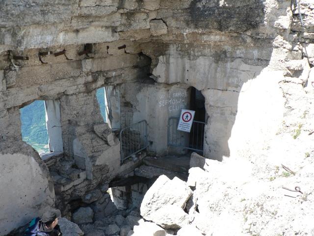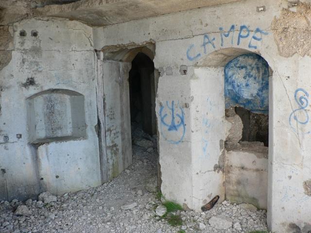 Il sentiero continua lungo la strada militare. All'inizio della stessa, sulla destra, sembra ci siano state delle costruzioni, forse un corpo di guardia.