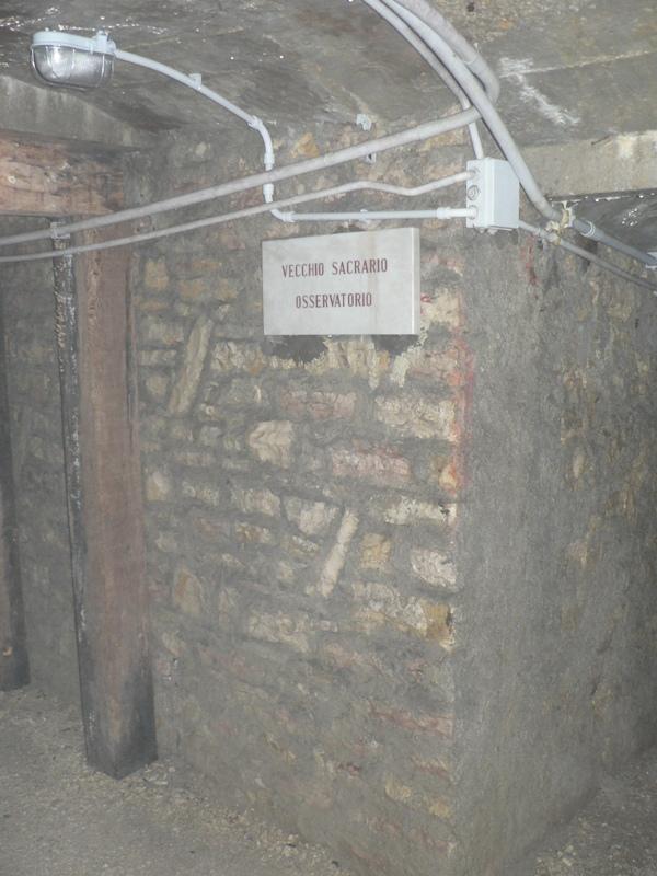 Una diramazione della galleria porta al vecchio sacrario sotterraneo costruito nel 1925 ed abbandonato per le troppe infiltrazioni d'acqua.