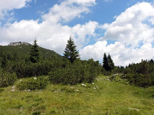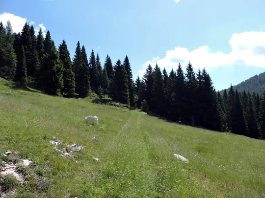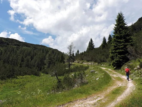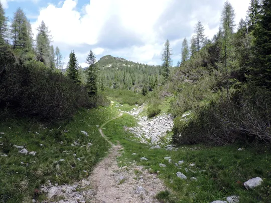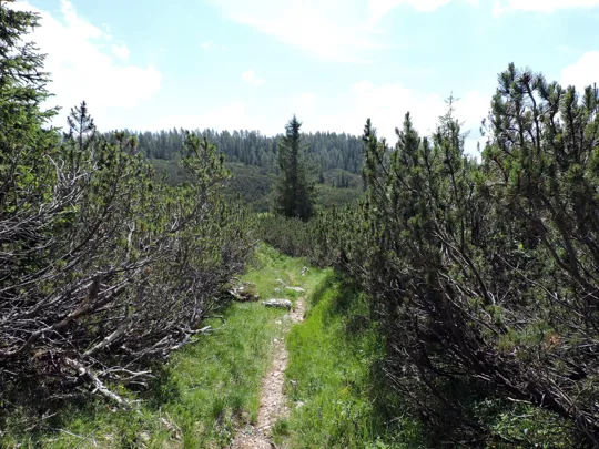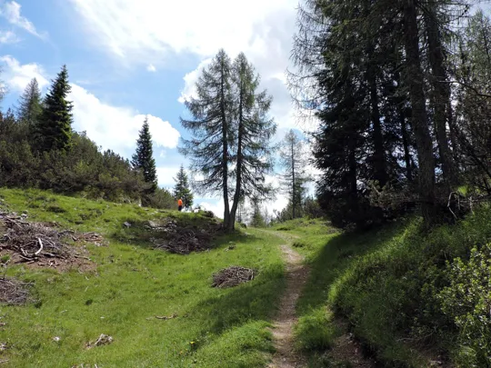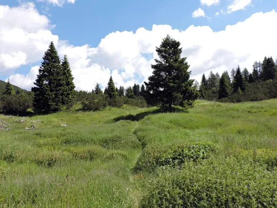 Da adesso il resto del percorso è facilmente riconoscibile. Al sentiero giriamo a sinistra, sempre in direzione nord-est.