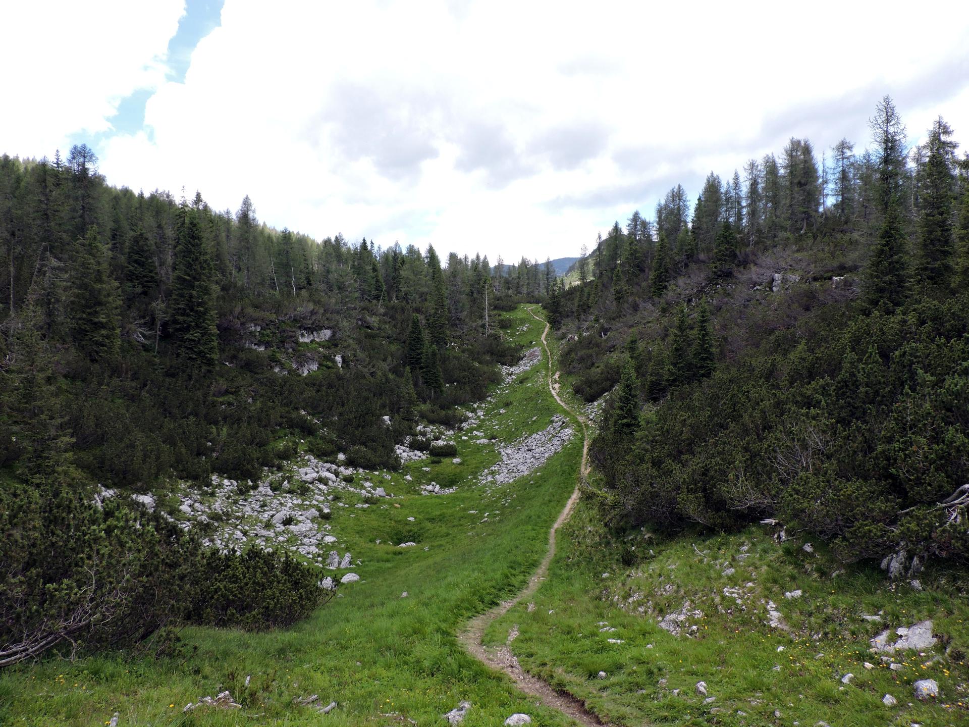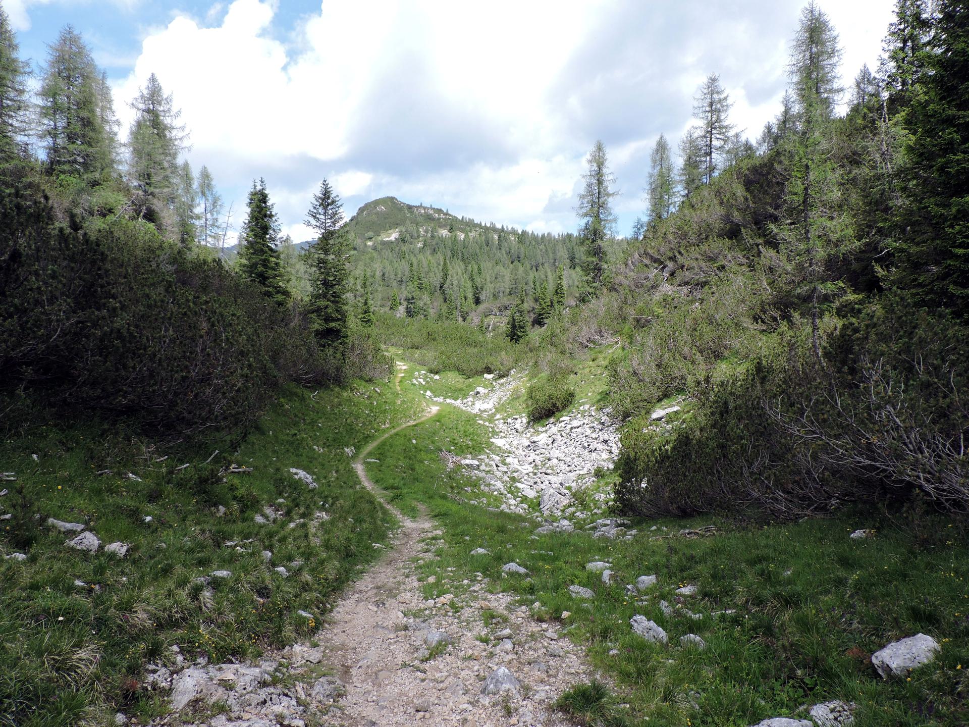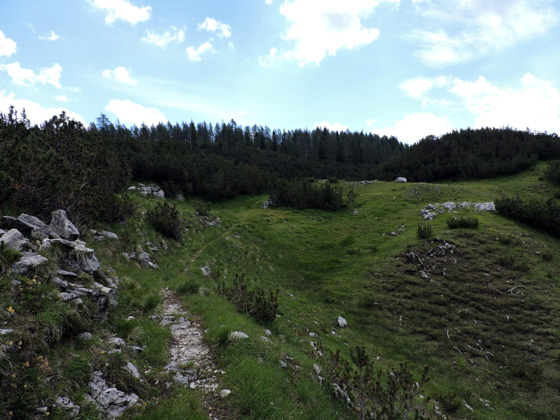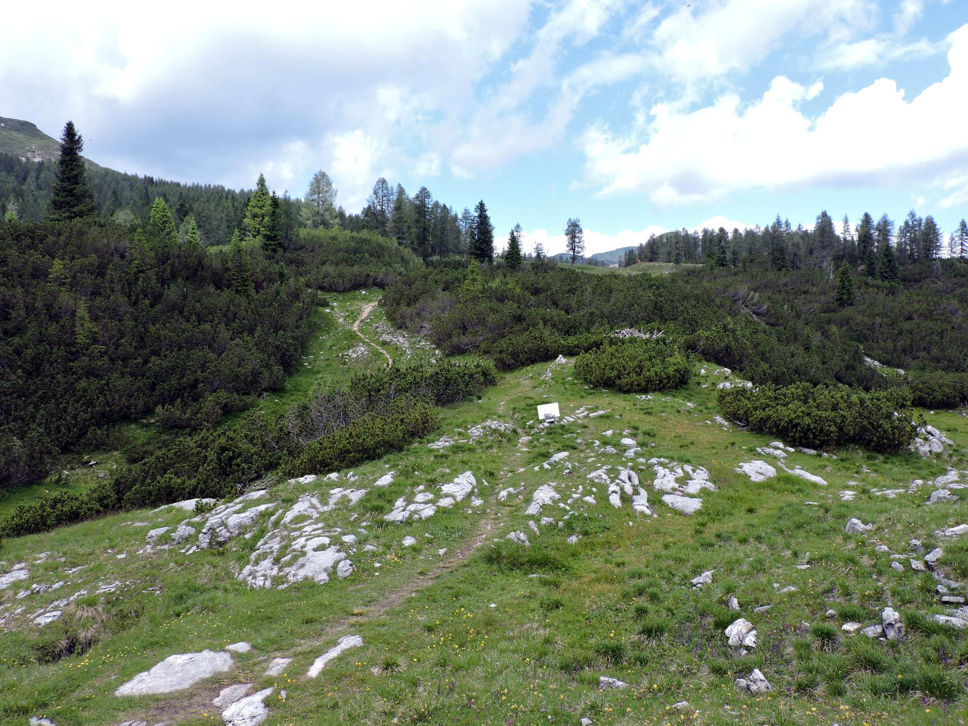 Superato il baito il sentiero ha alcuni sali e scendi per la presenza di doline carsiche.