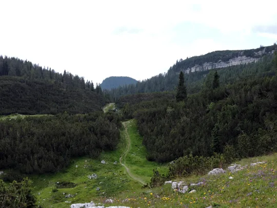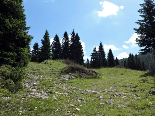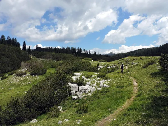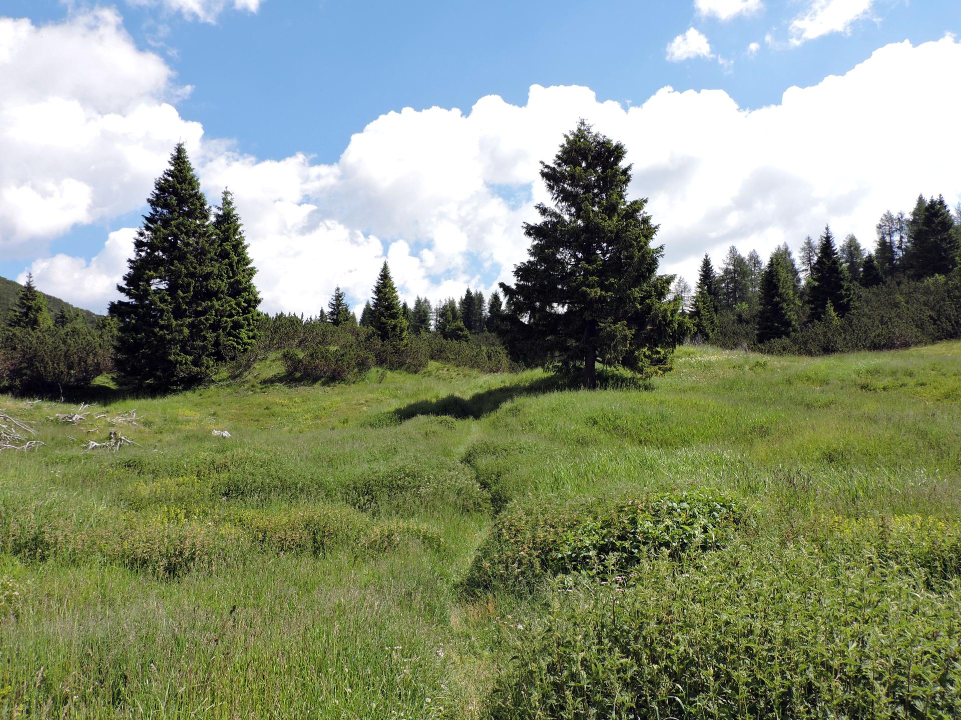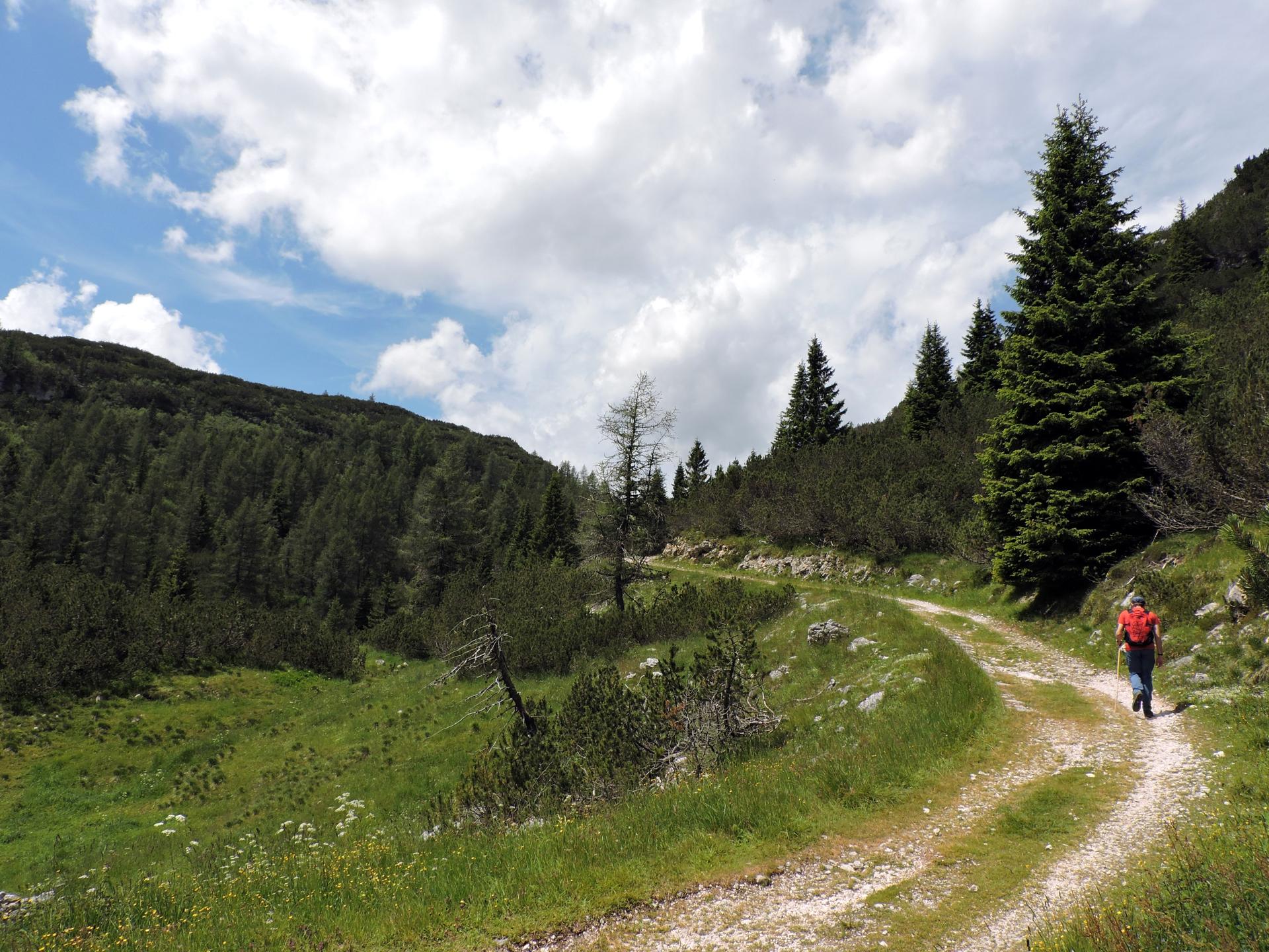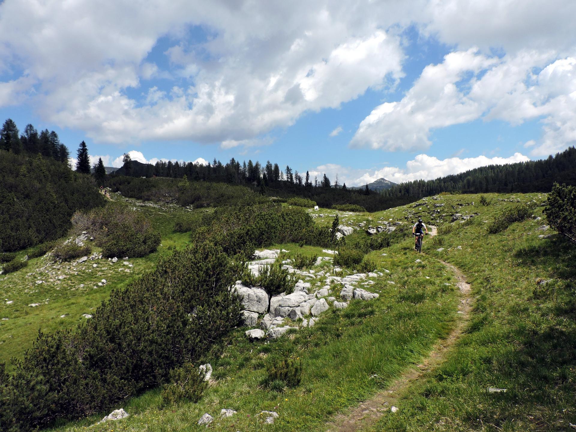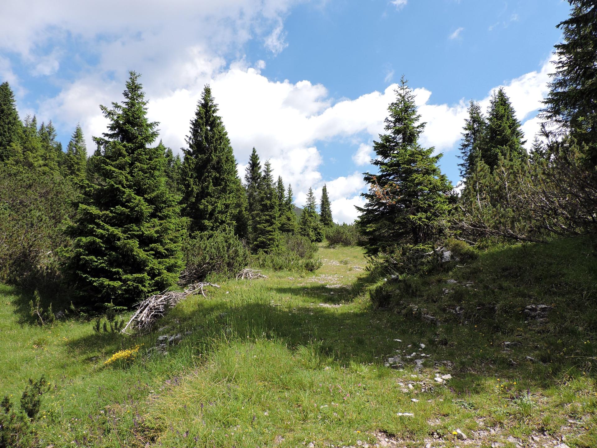 Superato il baito il sentiero ha alcuni sali e scendi per la presenza di doline carsiche.