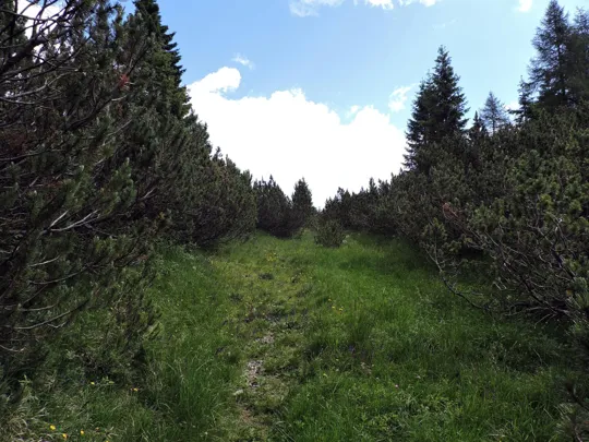 ma poi, quando inizia la vegetazione di mughi la cosa si fa un po' più complicata .... la direzione da seguire è nord-est.