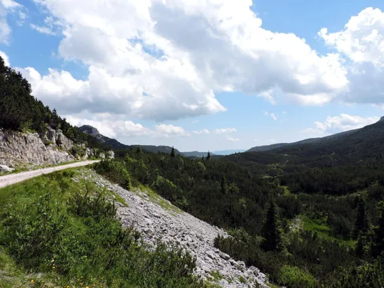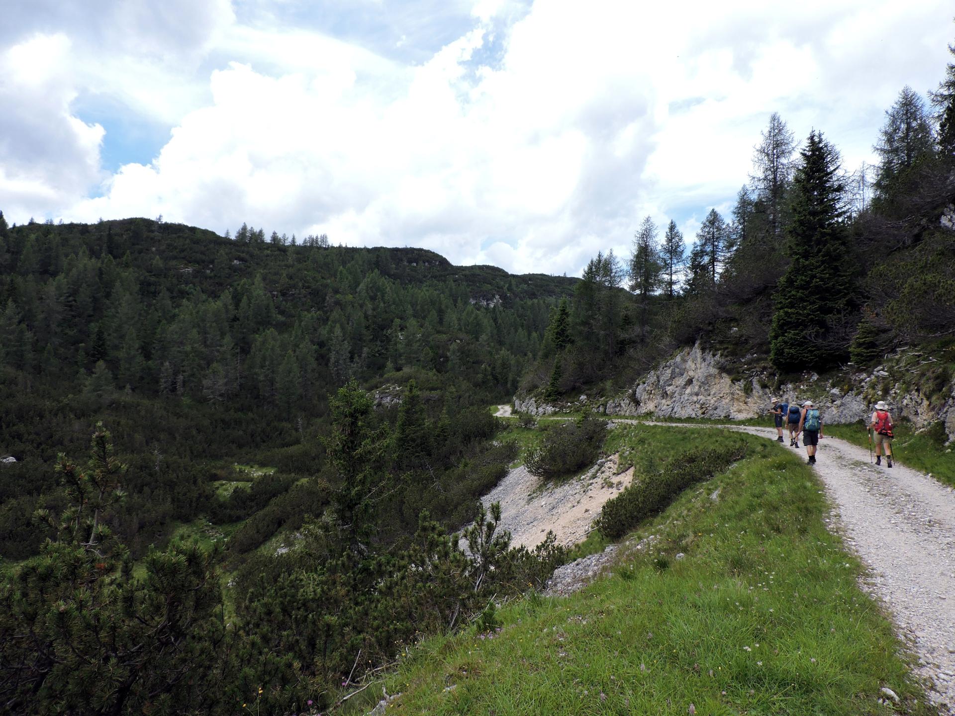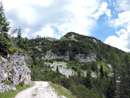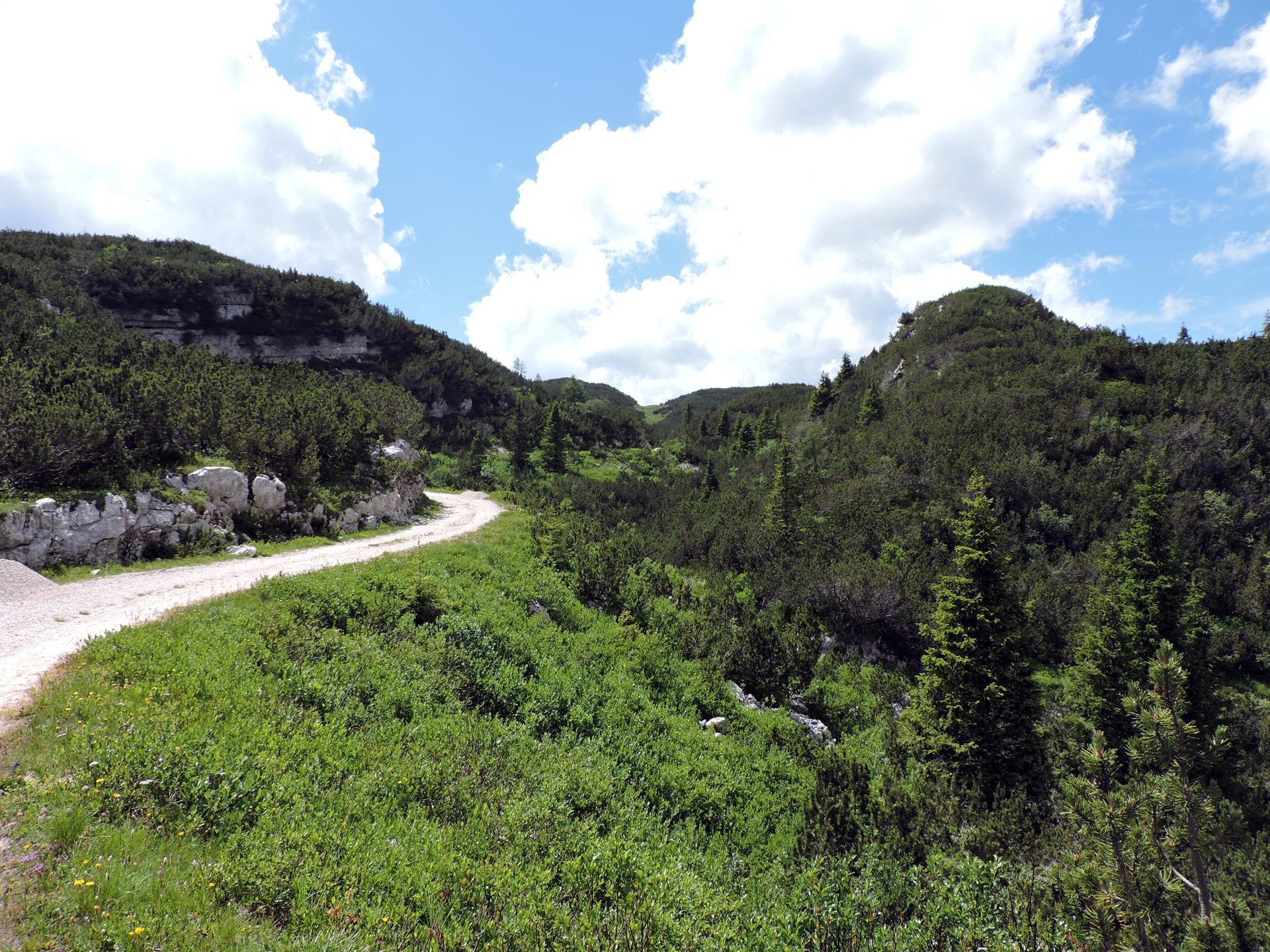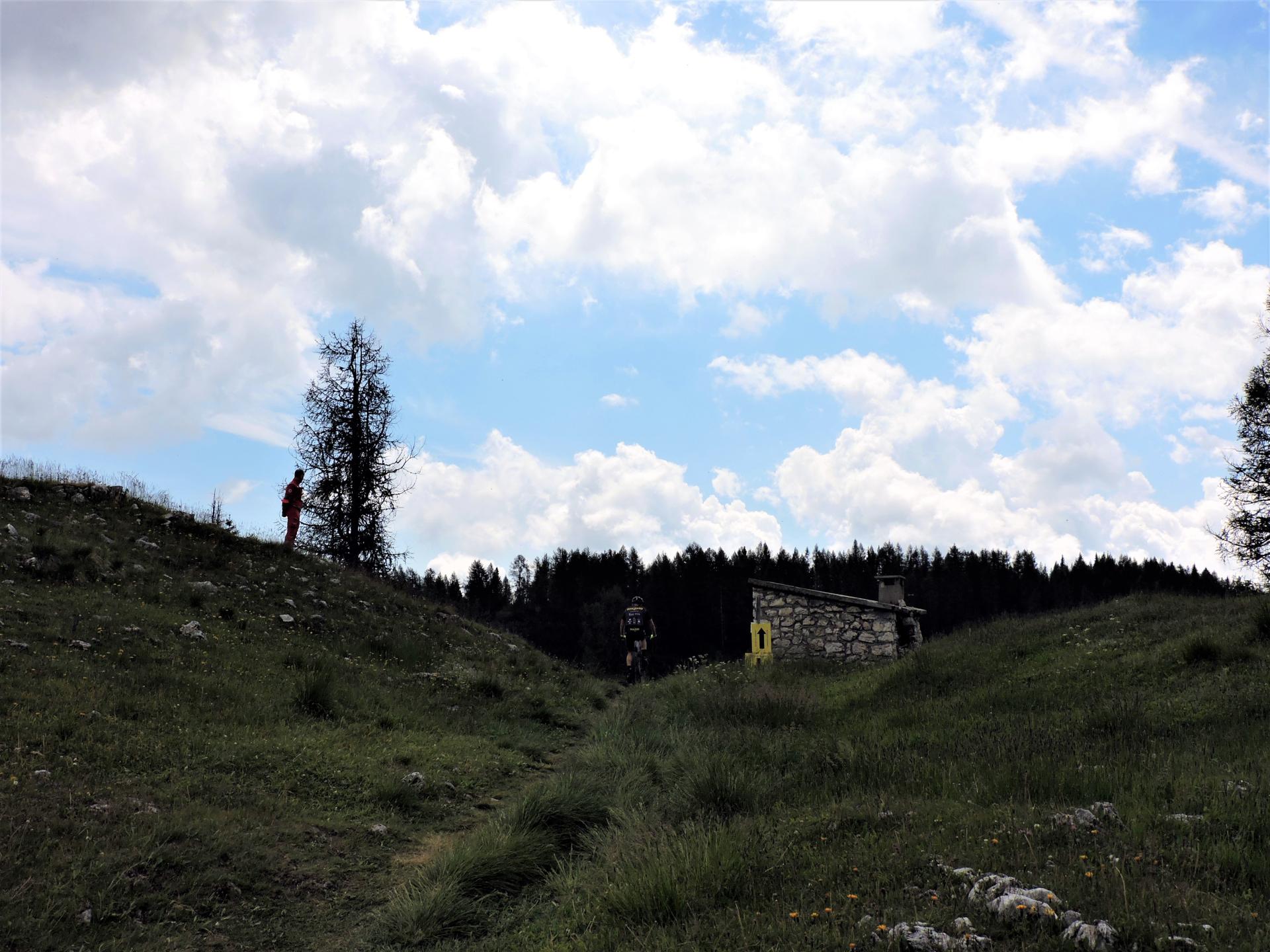 Visitata la chiesetta si risale dalla dolina per proseguire in direzione nord-ovest sulla strada militare.