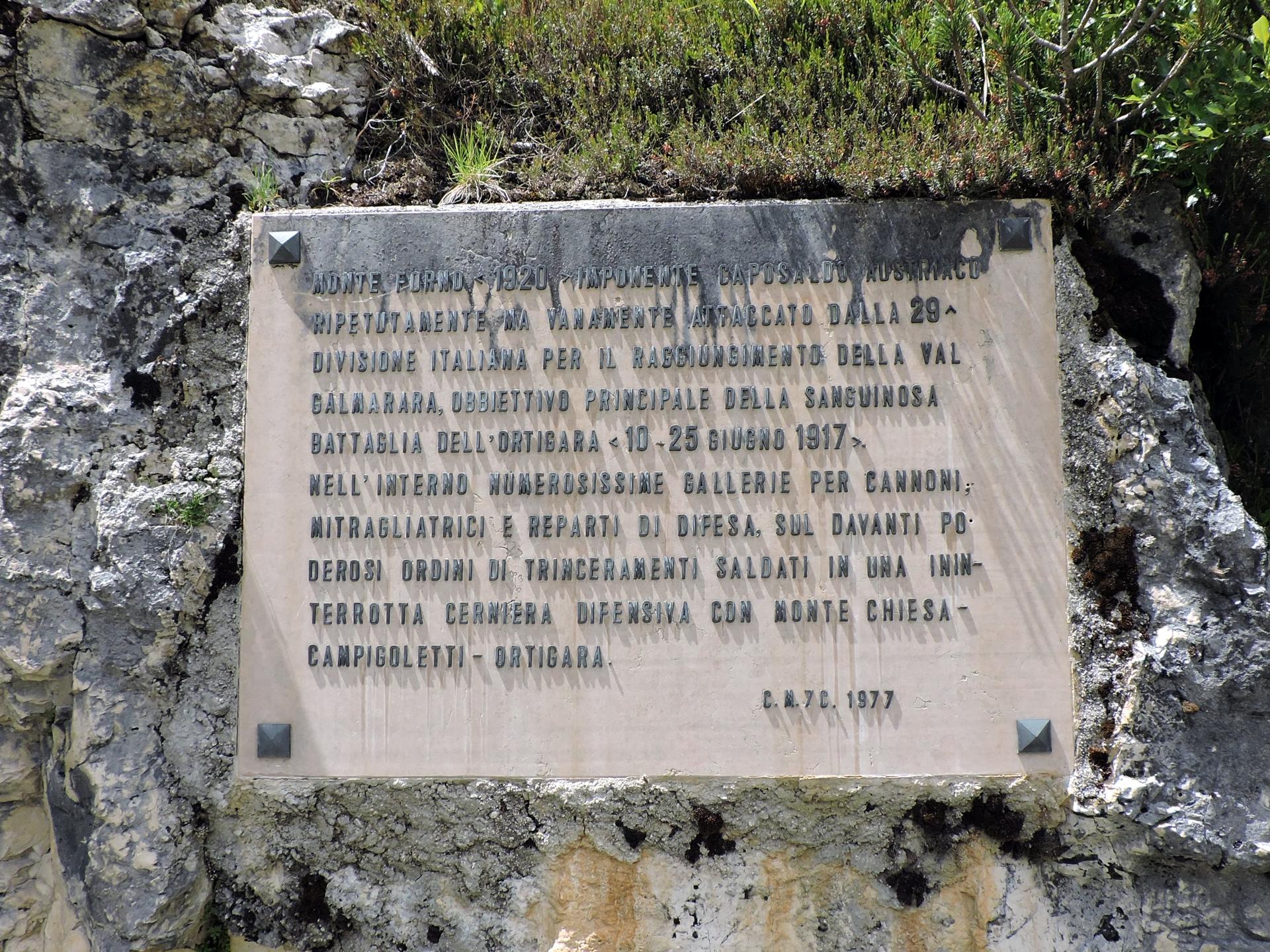 Percorsi 400 metri arriviamo sotto al Monte Forno ed al parcheggio. Per visitare il Monte Forno il sentiero inizia subito a destra della strada verso Malga Pozze. Storia e dettagli sulla pagina dedicata al Monte Forno.
