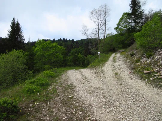 Ricongiunti alla strada si prende a sinistra. Si raggiunge un altro incrocio in località Pansalarga e da qui si prosegue a destra seguendo il sentiero 805 verso Col del Rosso.