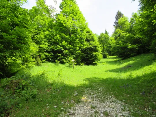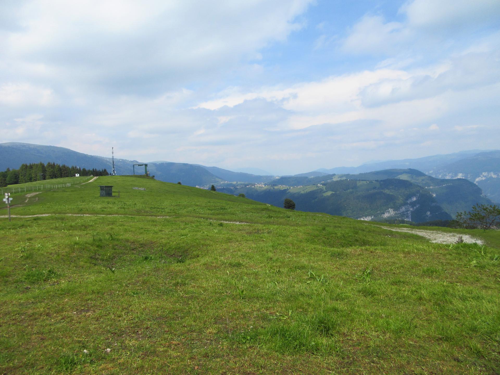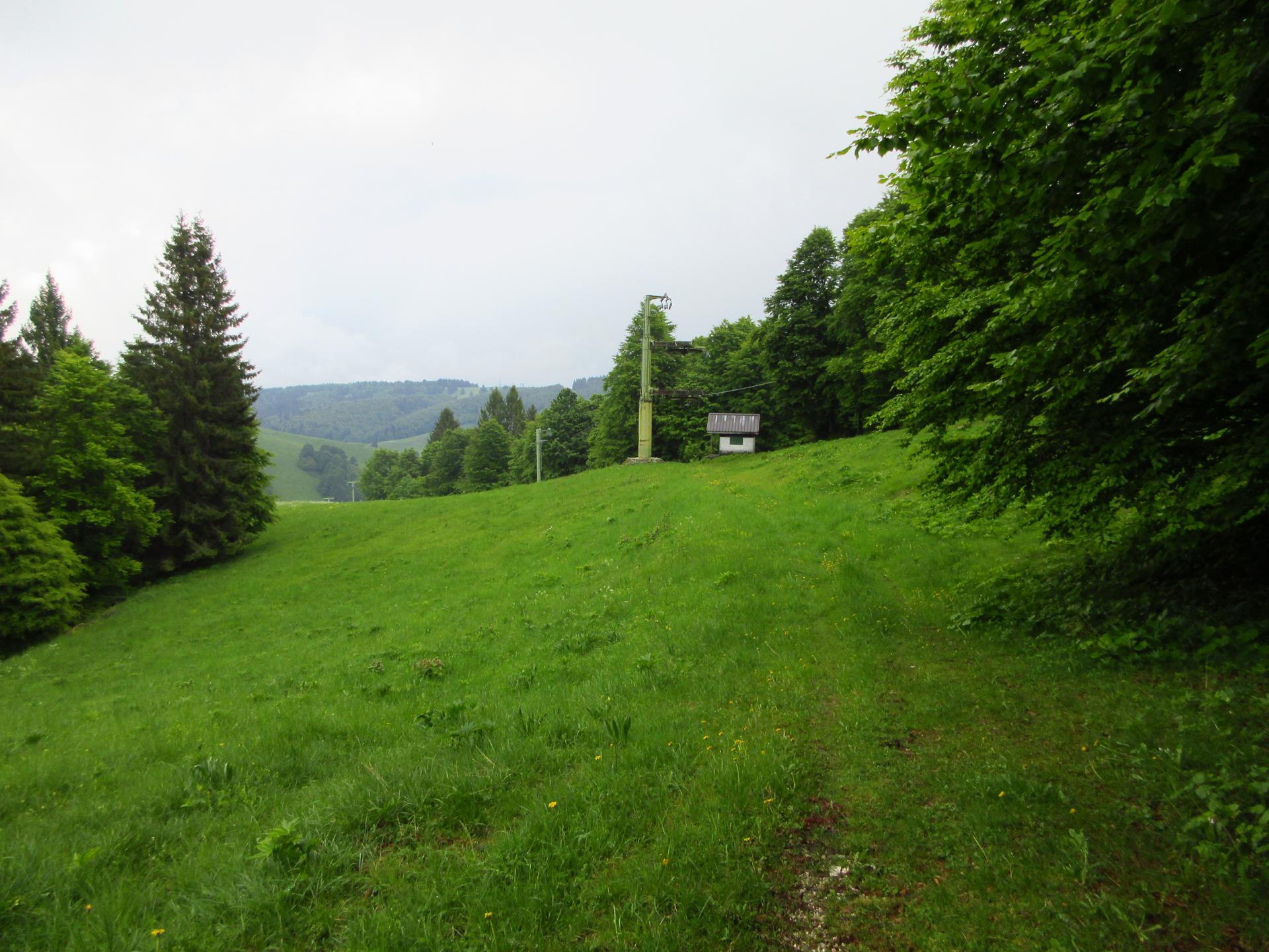 Superati gli impianti, poco prima del bosco, si devia a destra su strada erbosa in direzione dell'impianto che sale da Val Melago.