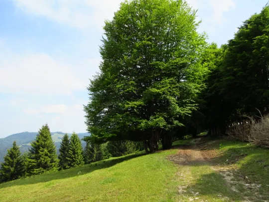 Arrivati nei pressi del bosco le indicazioni ci portano a svoltare a sinistra. Ancora pochi minuti e si arriva a Col del Rosso.