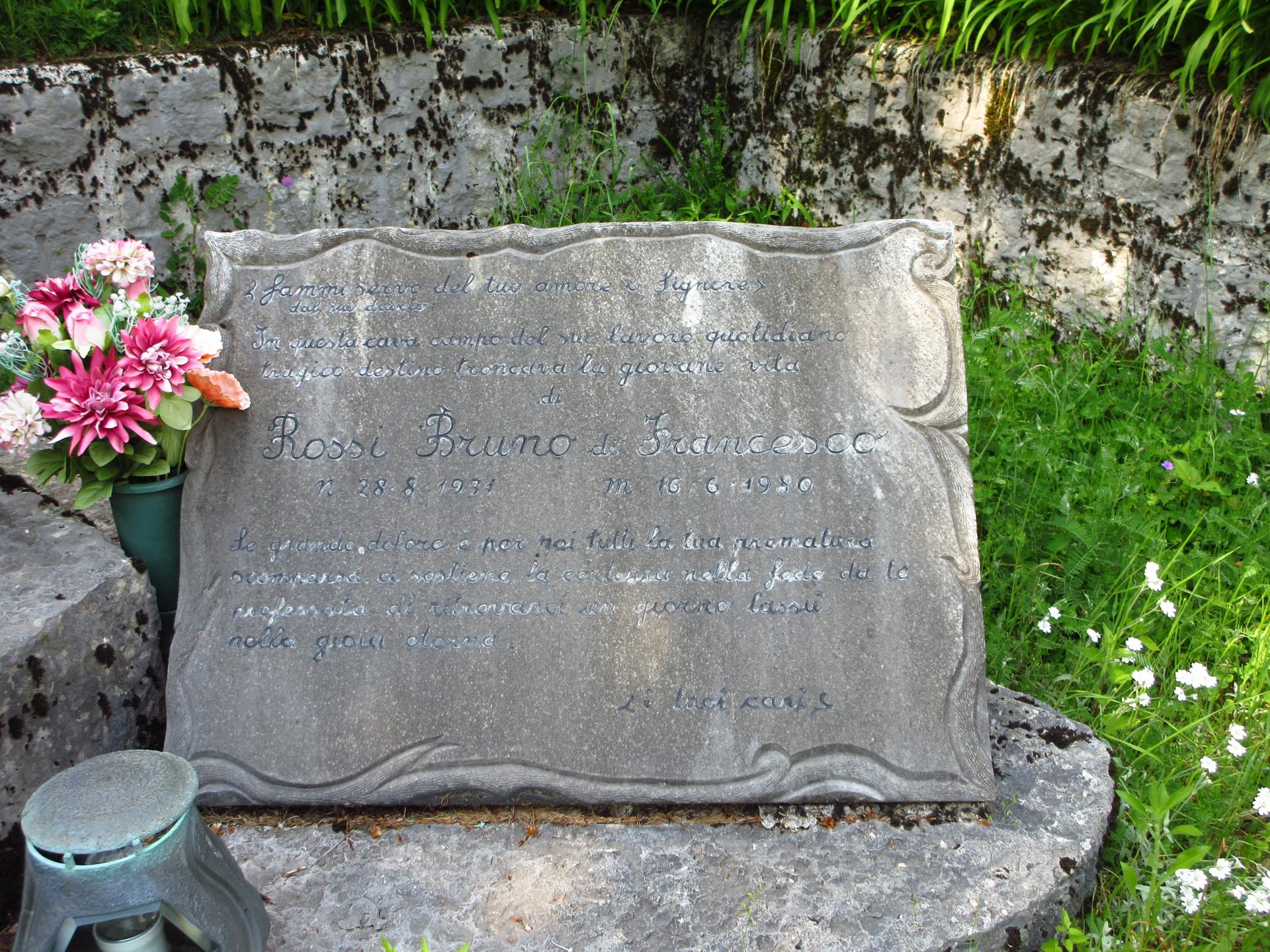 "In questa cava campo del suo lavoro quotidiano tragico destino troncava la giovane vita di Rossi Bruno di Francesco"
